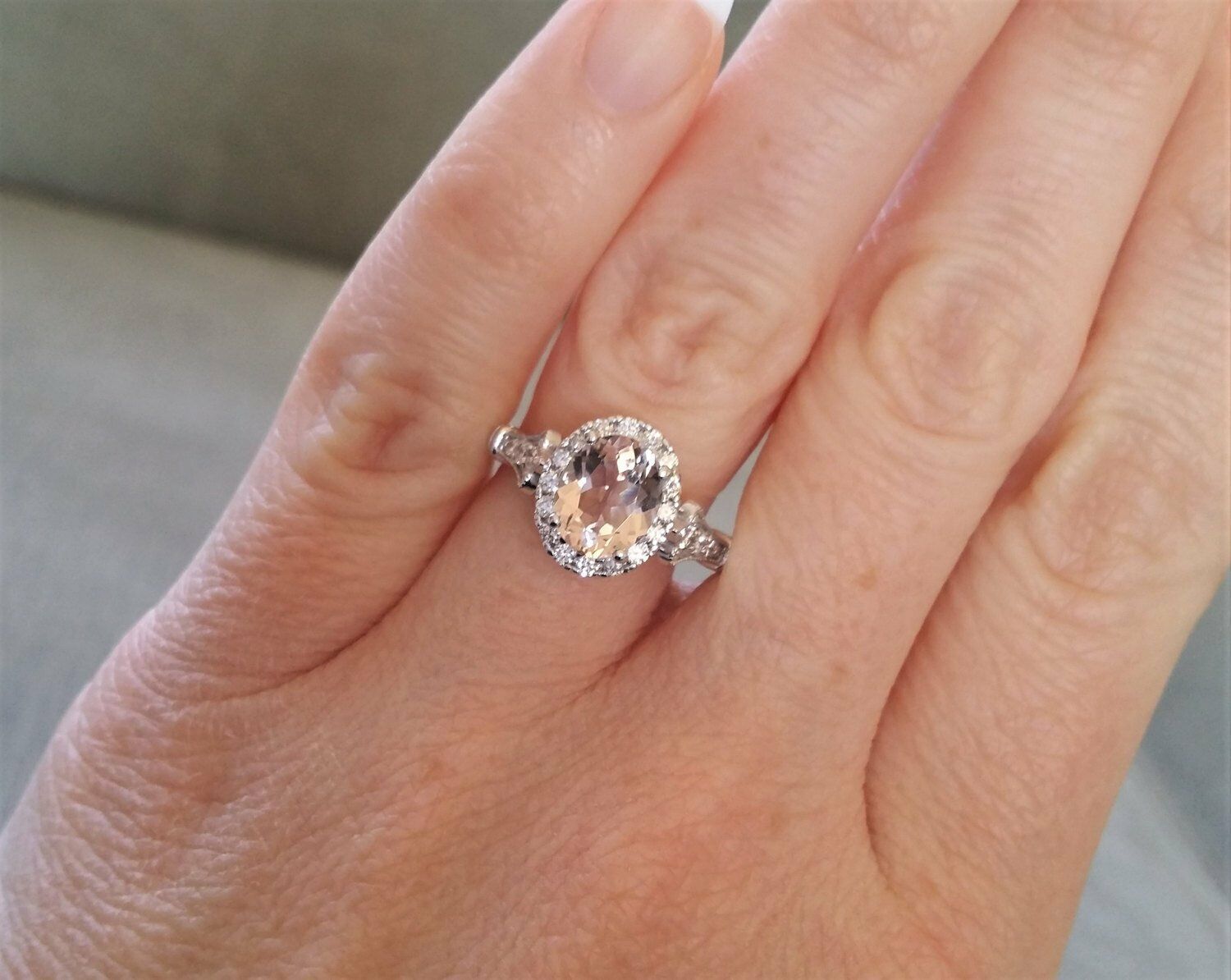 1.5Ct Oval Cut Peach Morganite Filigree Halo Engagement Ring 14K White Gold Over