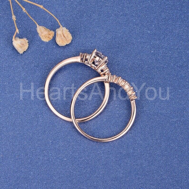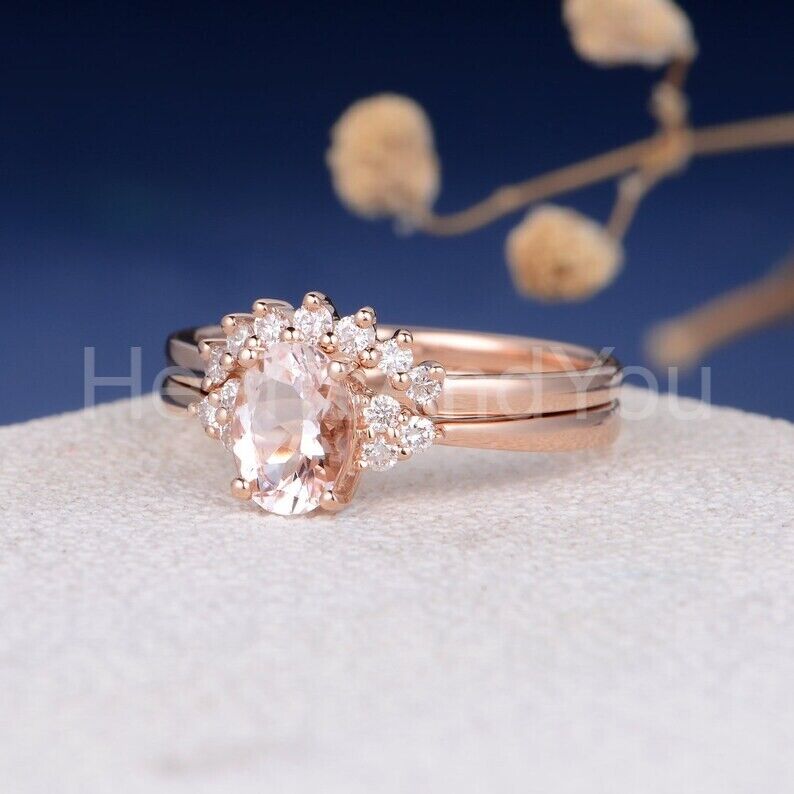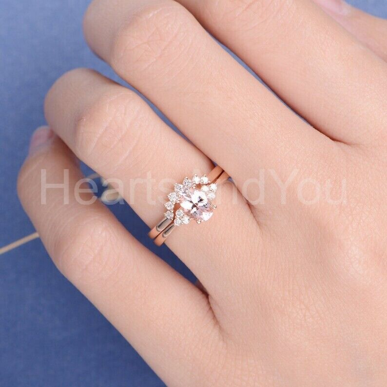 1.5ct Oval Cut Simulated Morganite Curved Crown Bridal Set 14k Rose Gold Plated
