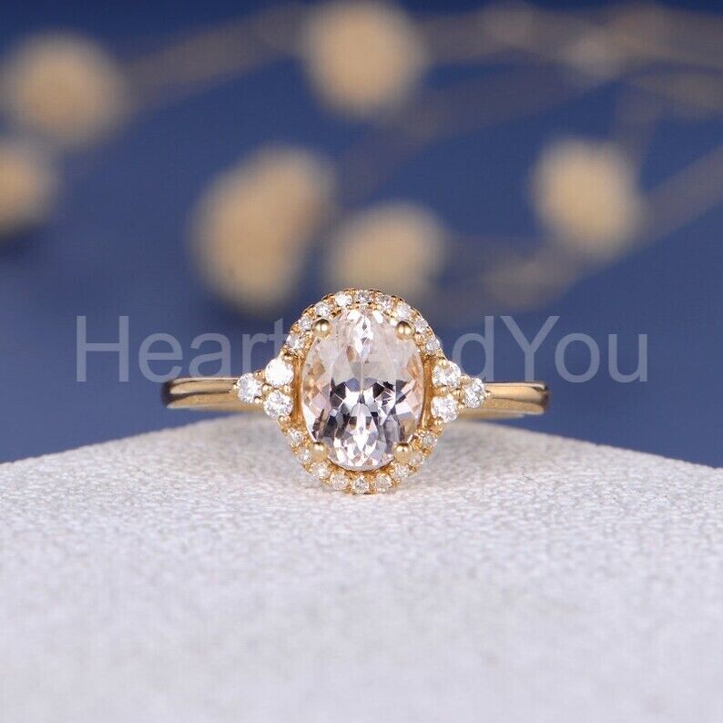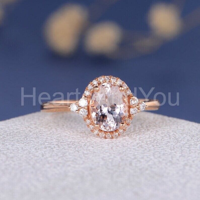 1.5ct Oval Cut Simulated Morganite Halo Engagement Ring 14k Rose Gold Plated