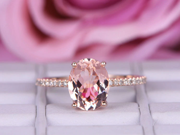 1.5ct Oval Cut Peach Morganite Engagement Ring Accents with Solitaire 14k Rose Gold Finish