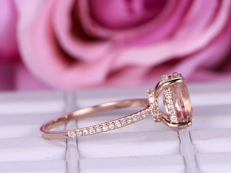 1.5ct Oval Morganite Engagement Ring Accents with Solitaire 14k Rose Gold Finish