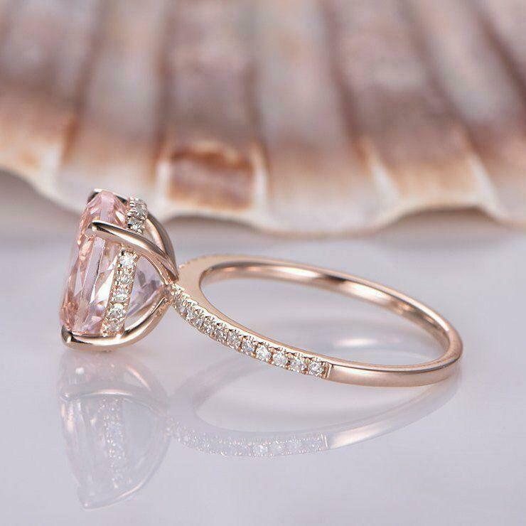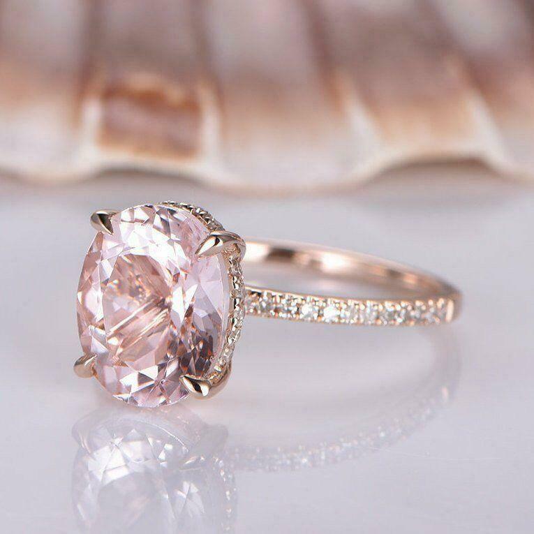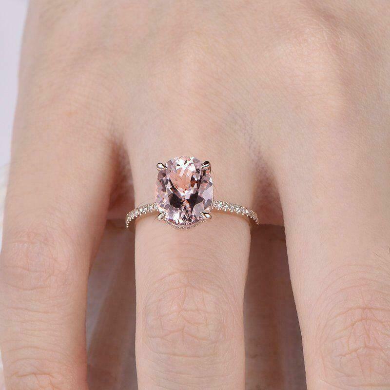 1.5ct Oval Peach Morganite Accent Solitaire Engagement Ring 14k Rose Gold Over