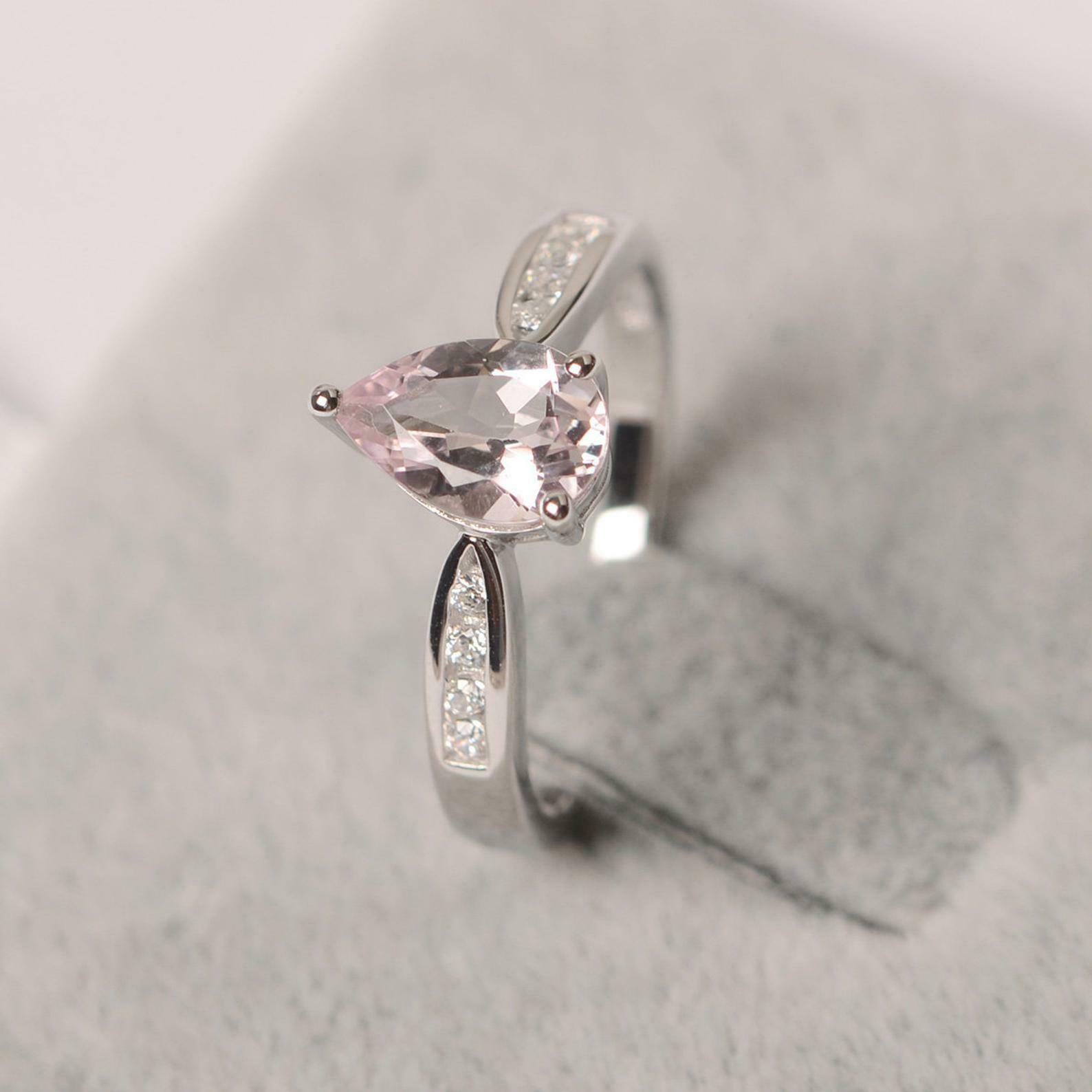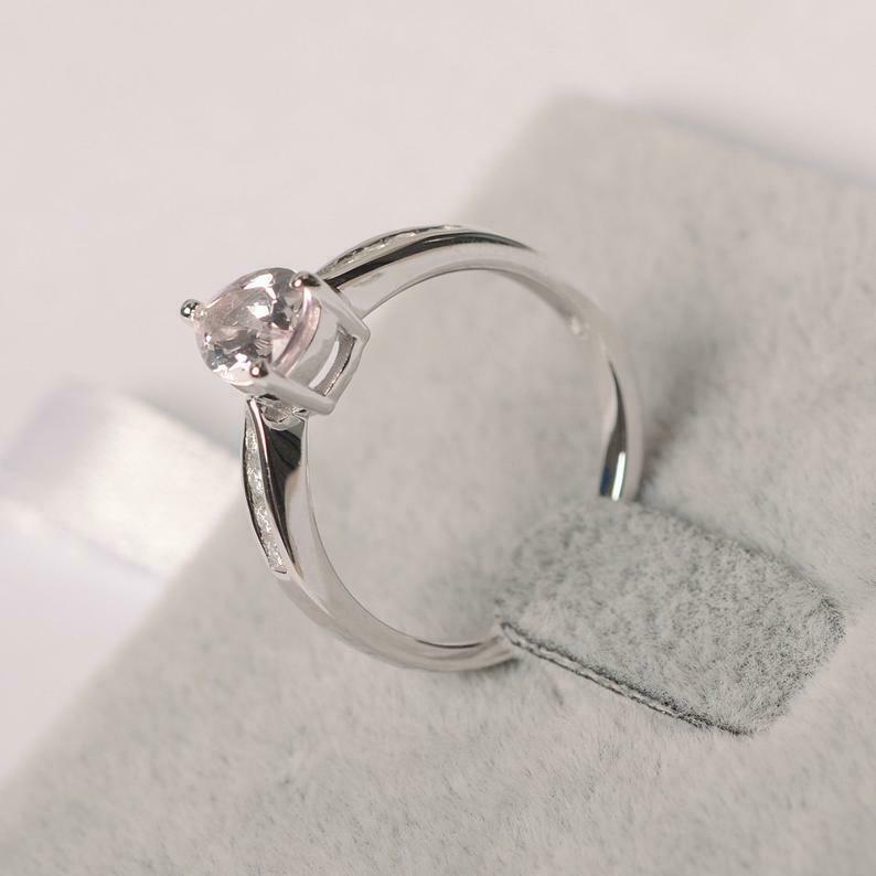 1.5ct Pear Cut Morganite Solitaire with Round Accent Ring 14k White Gold Finish