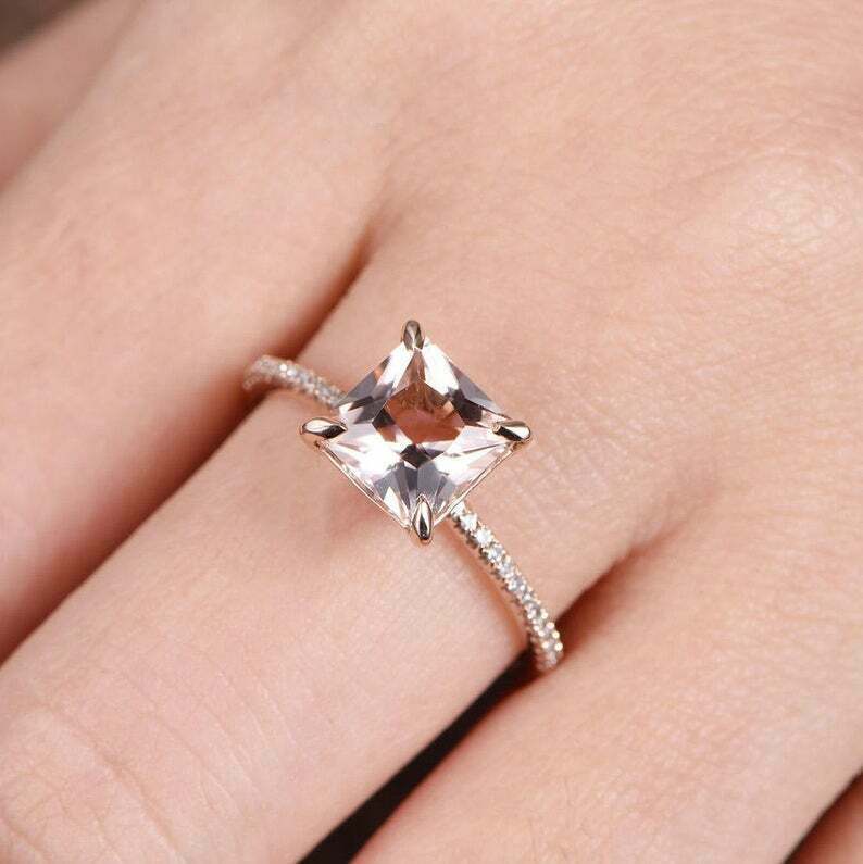 1.5ct Princess Cut Morganite Diamond Accents Solitaire Ring 14k Rose Gold Finish