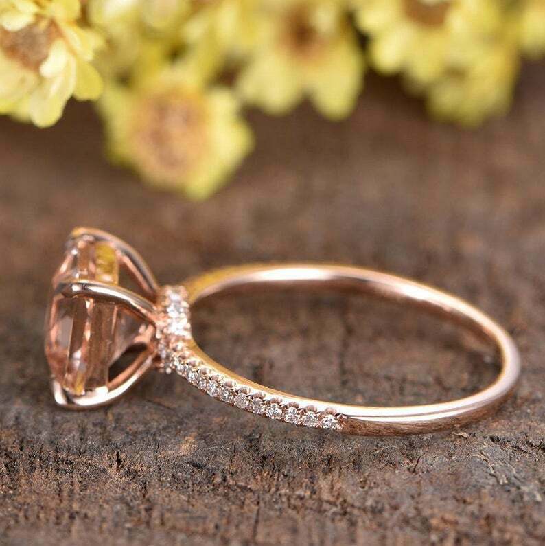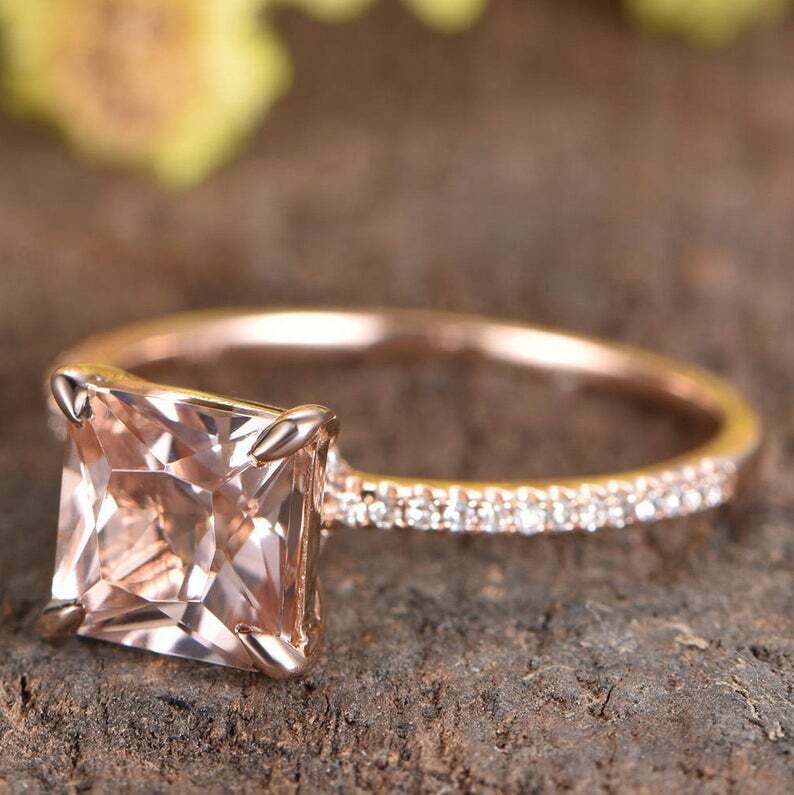 1.5ct Princess Cut Peach Morganite Diamond Accents Solitaire Ring 14k Rose Gold Finish