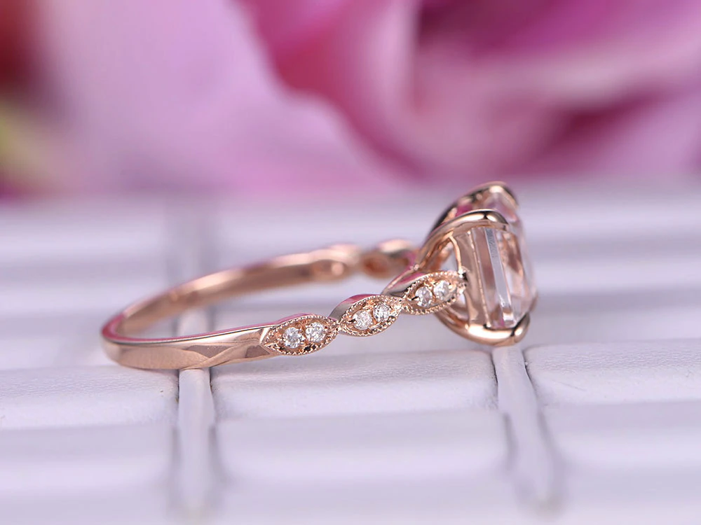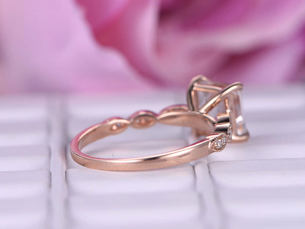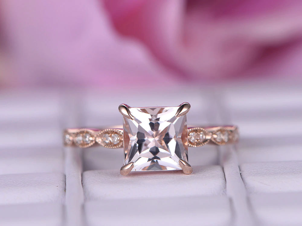 1.5ct Princess Cut Morganite Engagement Ring Diamond Accents 14k Rose Gold Over