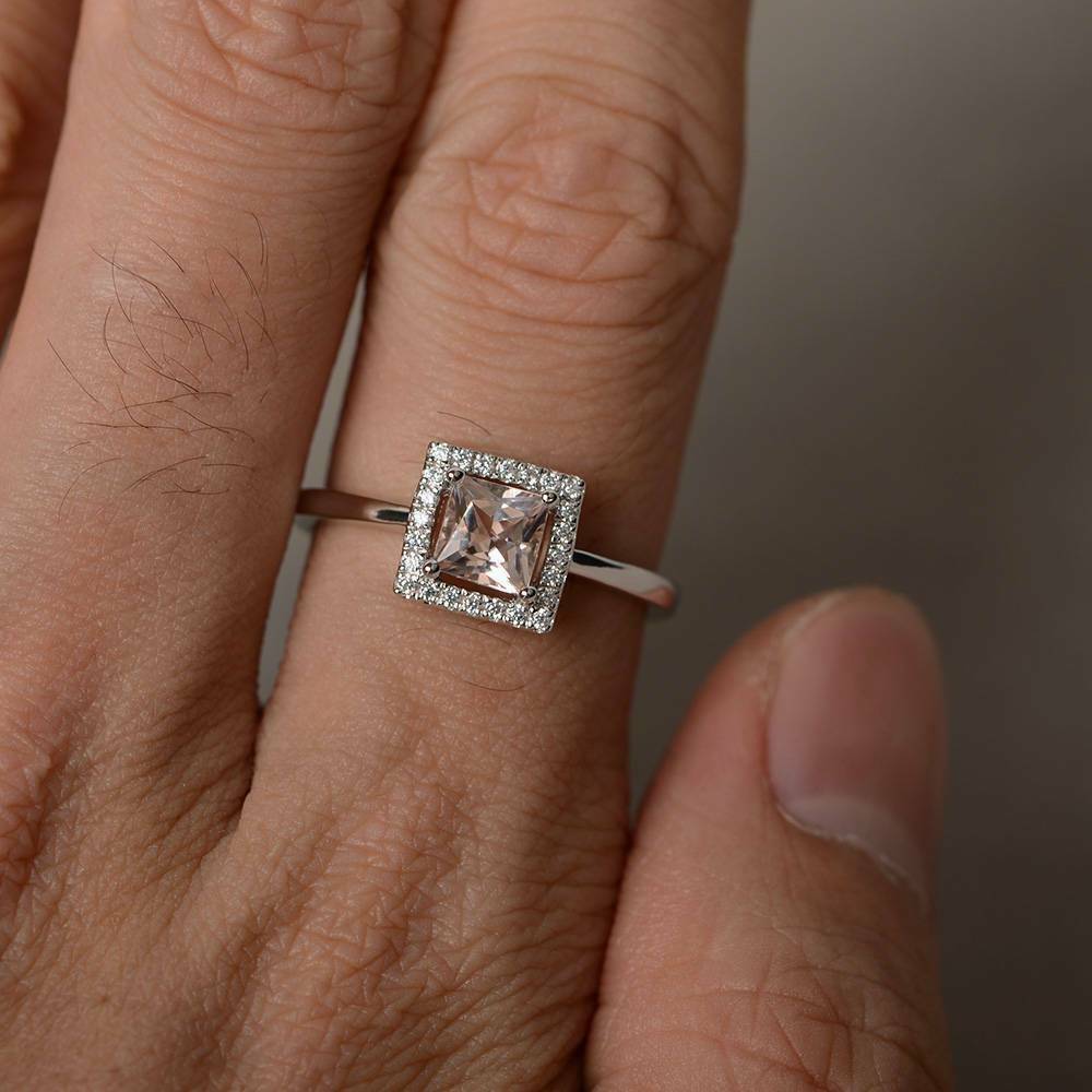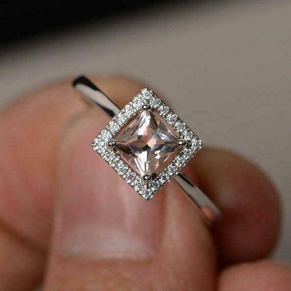 1.5ct Princess Cut Peach Morganite Engagement Ring 14k White Gold Over Solitaire