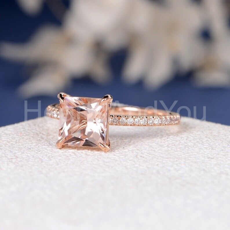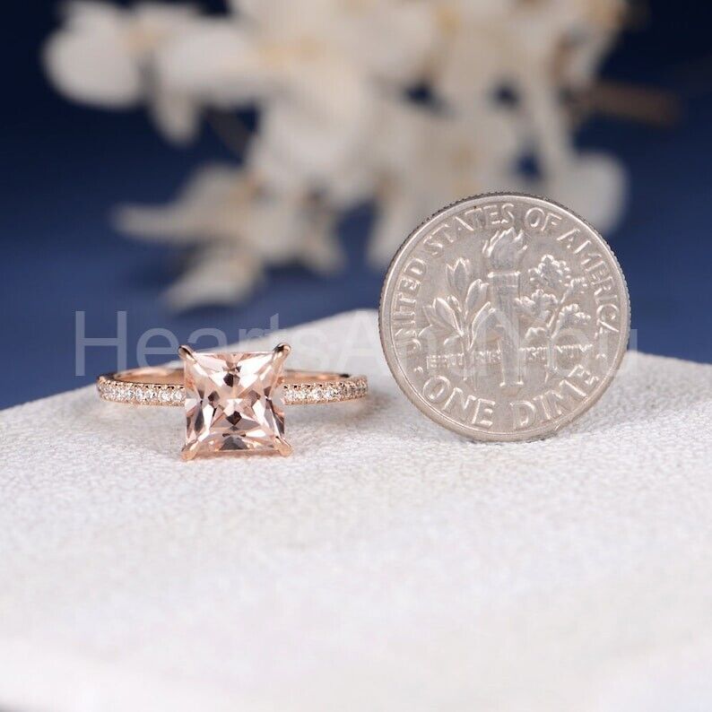 1.5ct Princess Cut Simulated Peach Morganite Accented Ring 14k Rose Gold Plated