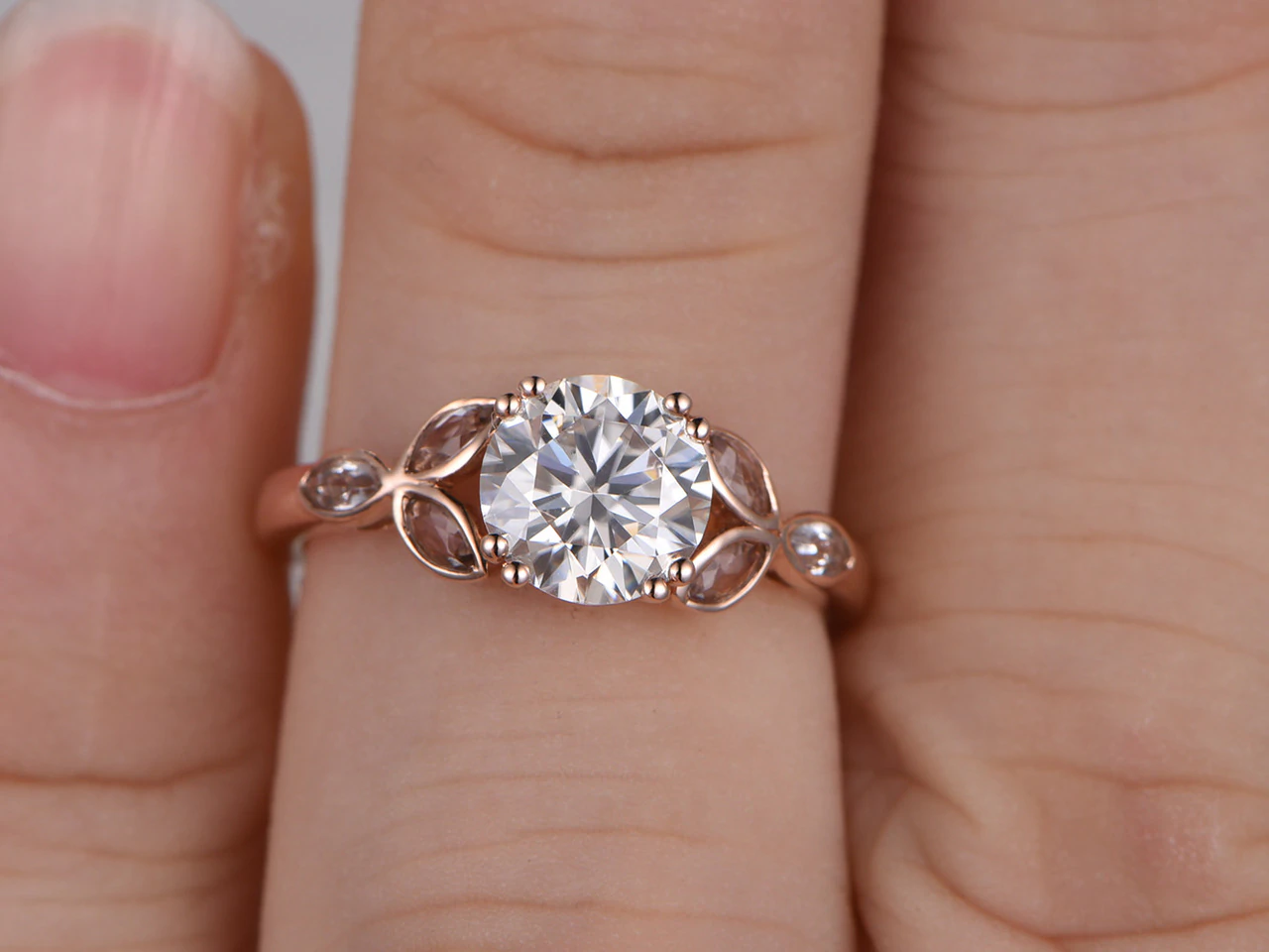 1.5ct Round Cut Diamond Engagement Ring Morganite Leaf Accent 14k Rose Gold Over