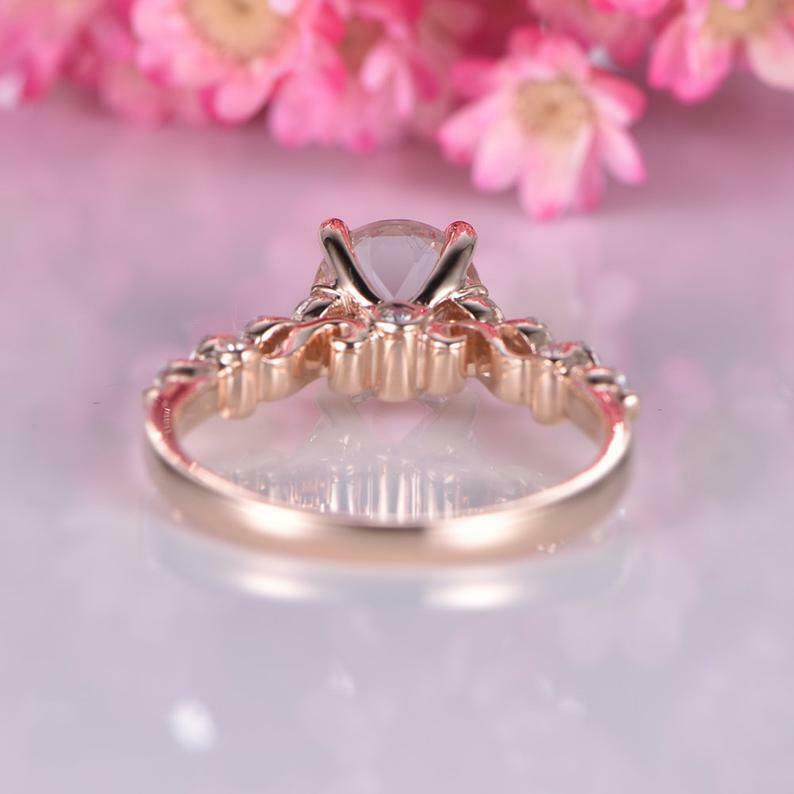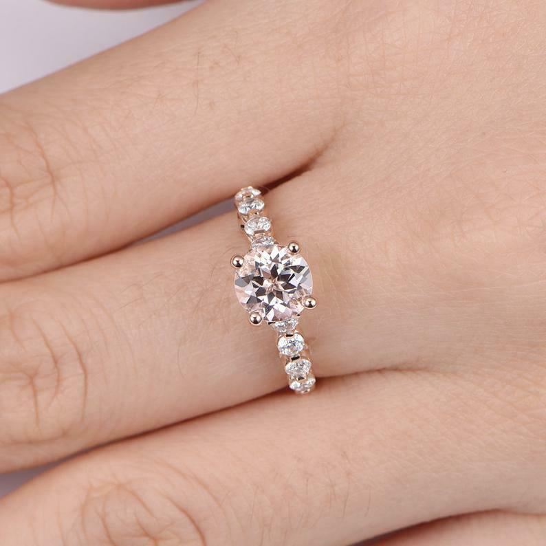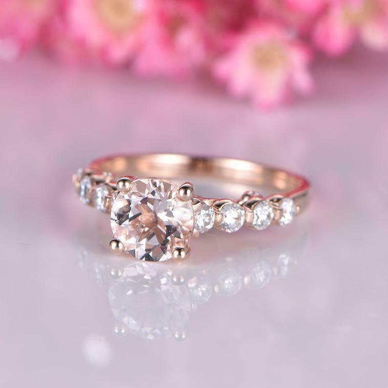 1.5ct Round Cut Morganite with Round Accents Engagement Ring 14k Rose Gold Finish