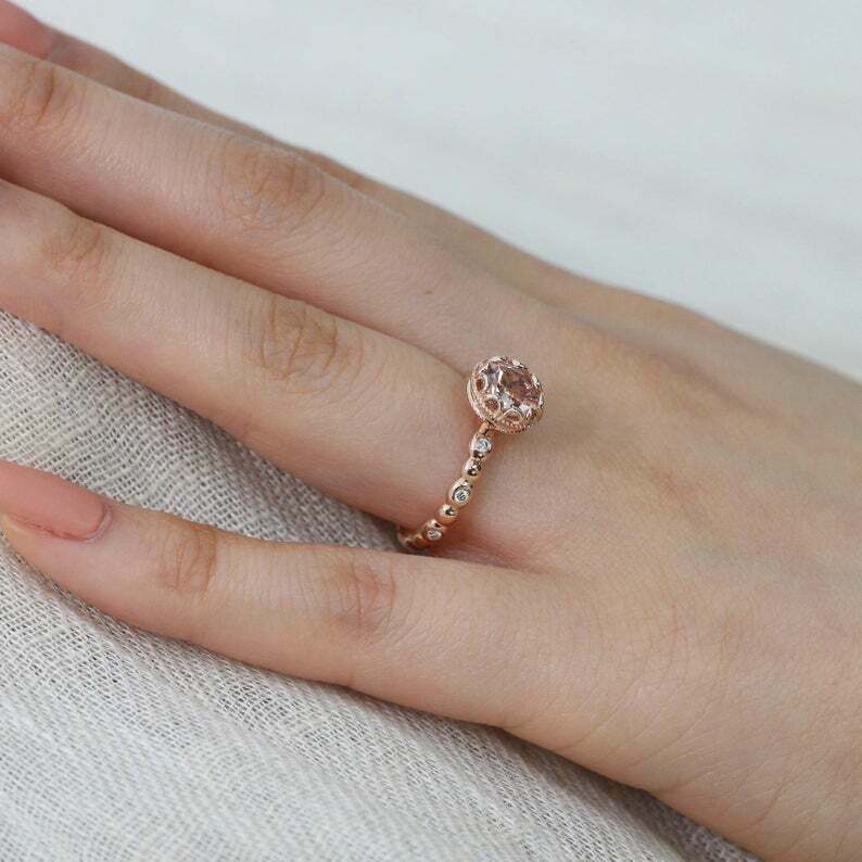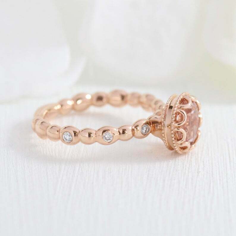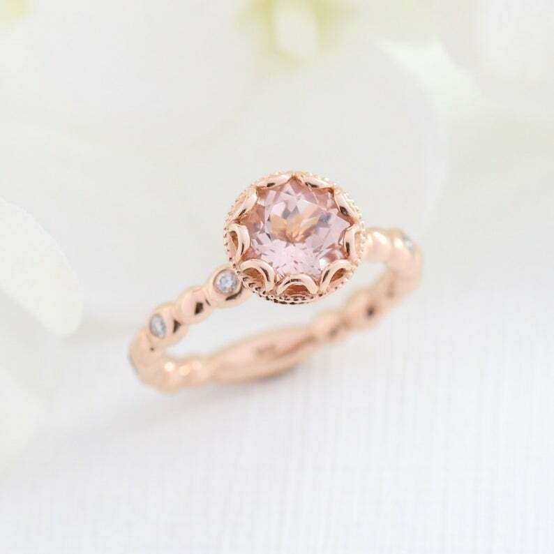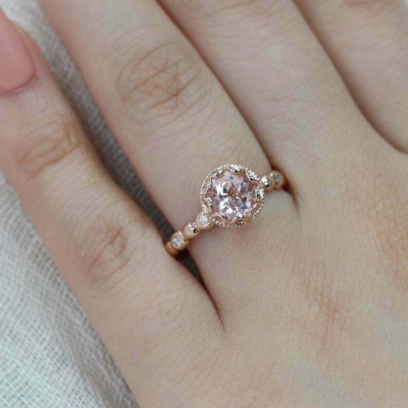1.5ct Round Cut Peach Morganite Diamond Accents Floral Ring 14k Rose Gold Finish