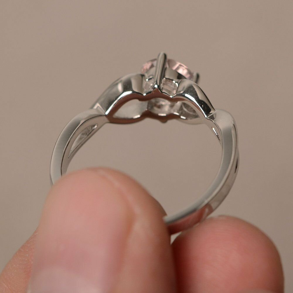 1.5ct Round Cut Peach Morganite Engagement Ring 14k White Gold Finish Infinity