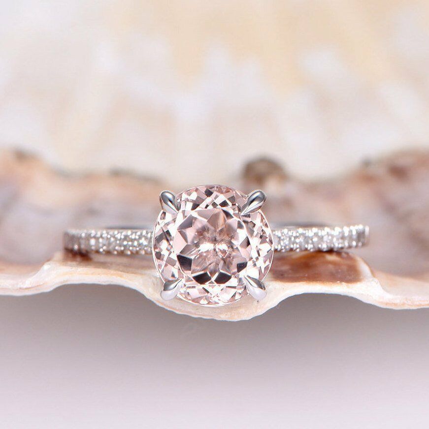 1.5ct Round Cut Peach Morganite Prong Set Engagement Ring 14k White Gold Finish