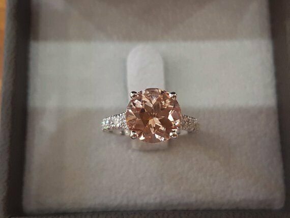 1.5ct Round Cut Peach Morganite Solitaire Engagement Ring 14k White Gold Finish