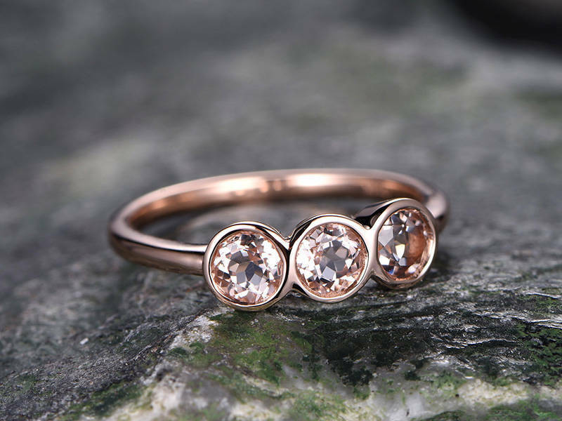 1.5Ct Round Cut Peach Morganite Trilogy Engagement Ring 18K Rose Gold Finish New