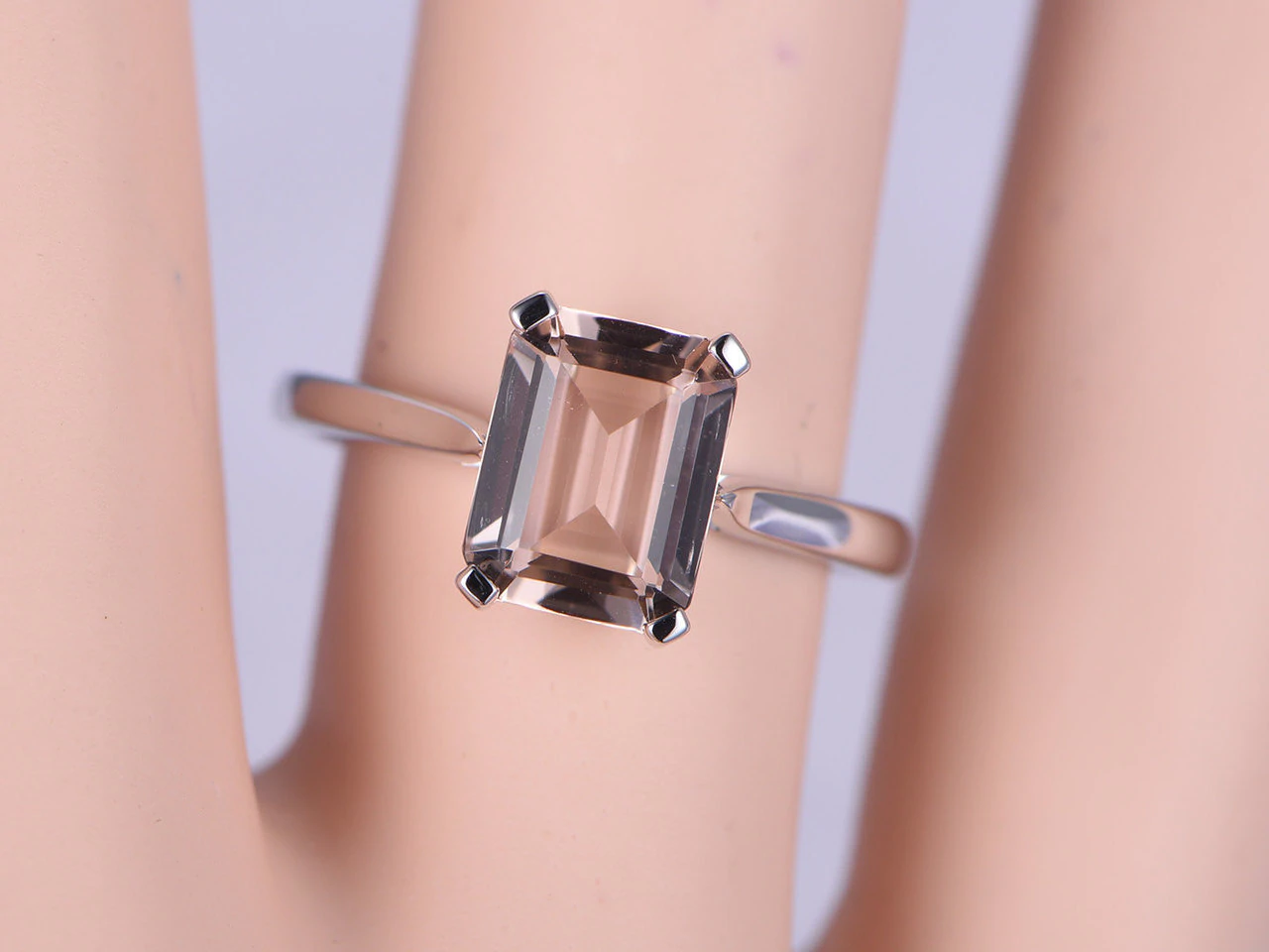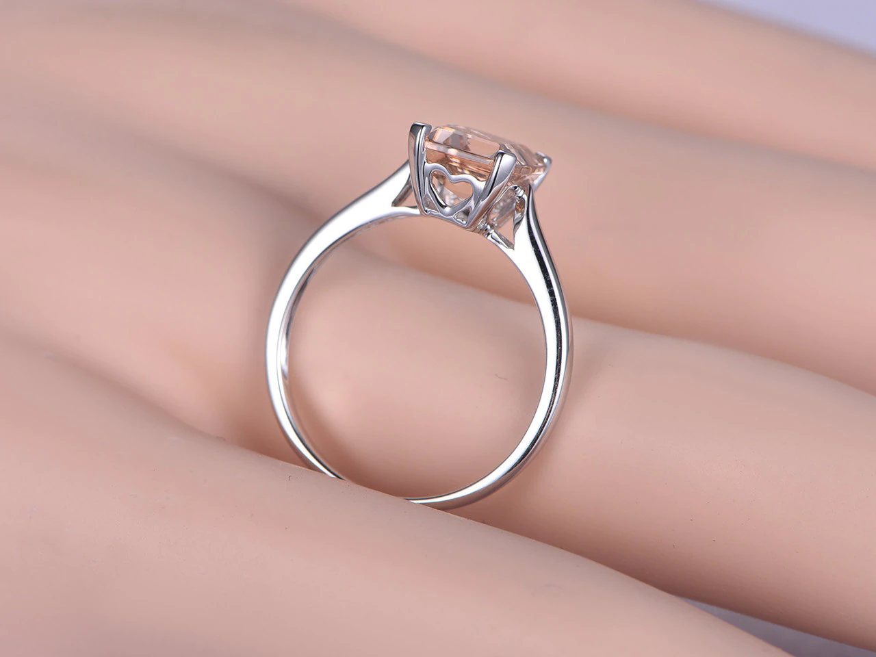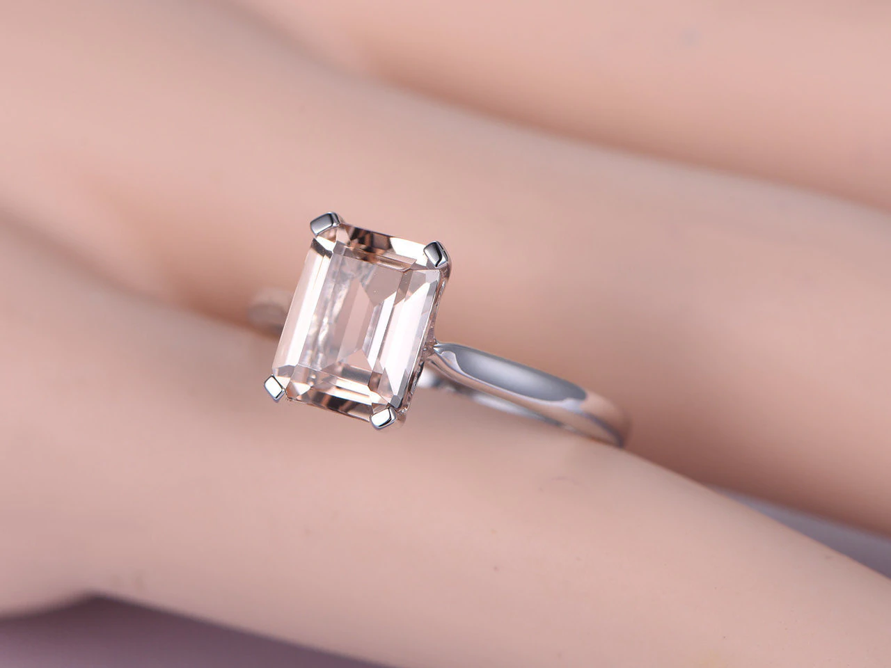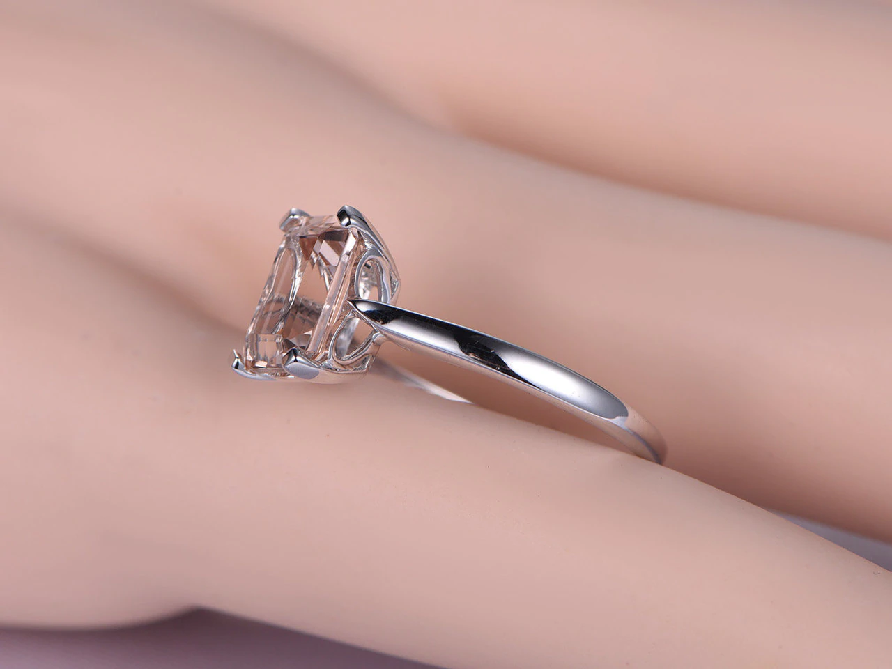 1.6ct Emerald Cut Peach Morganite Engagement Ring Solitaire 14k White Gold Over