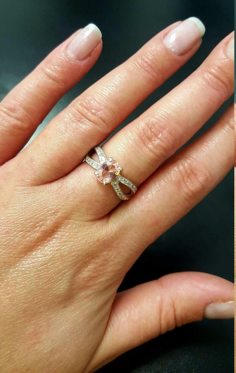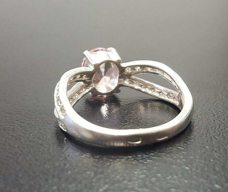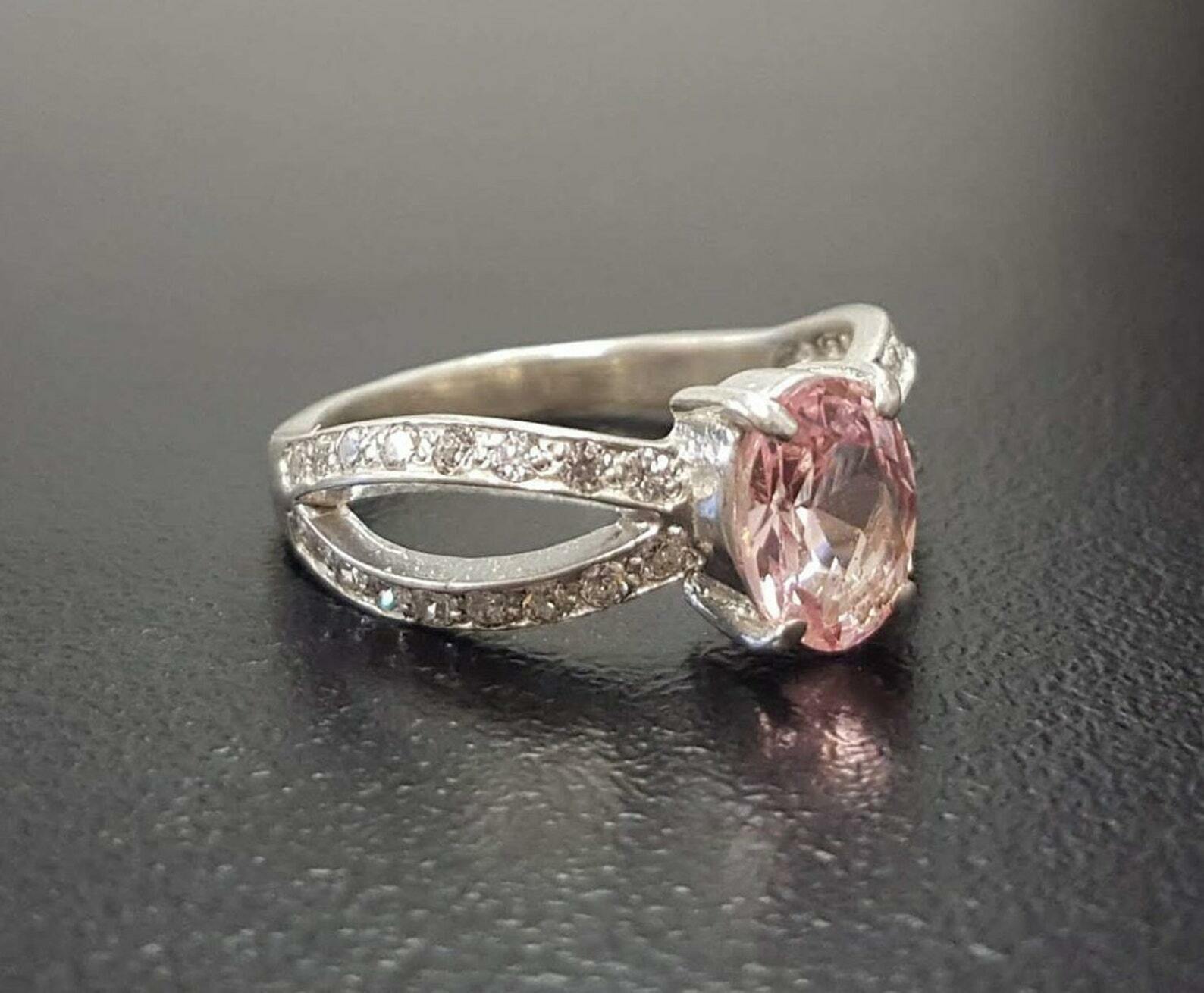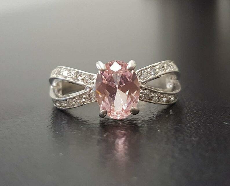 1.6ct Engagement Ring Oval Cut Peach Morganite Split Shank 14k White Gold Finish