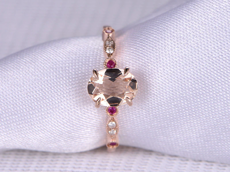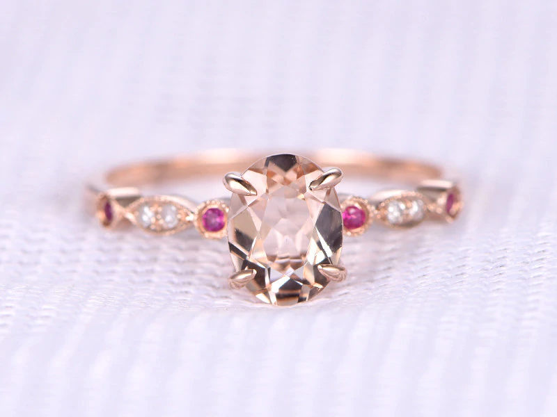 1.6ct Oval Cut Peach Morganite Accents with Solitaire Ring 14k Rose Gold Finish