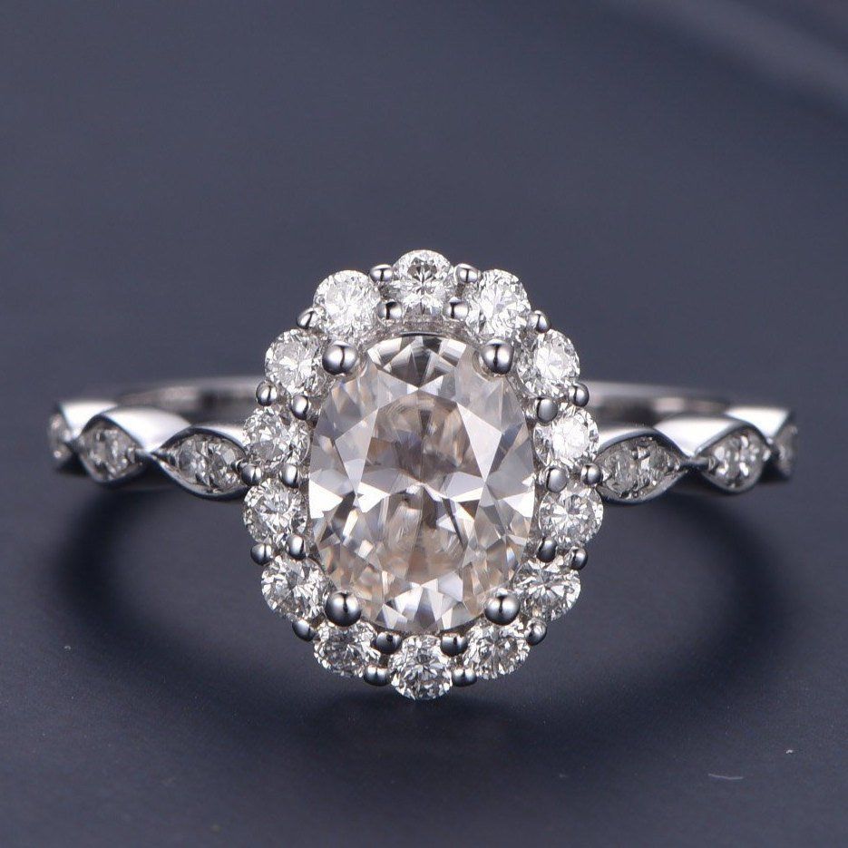 1.6ct Oval Cut Peach Morganite Halo Design Engagement Ring 14k White Gold Finish