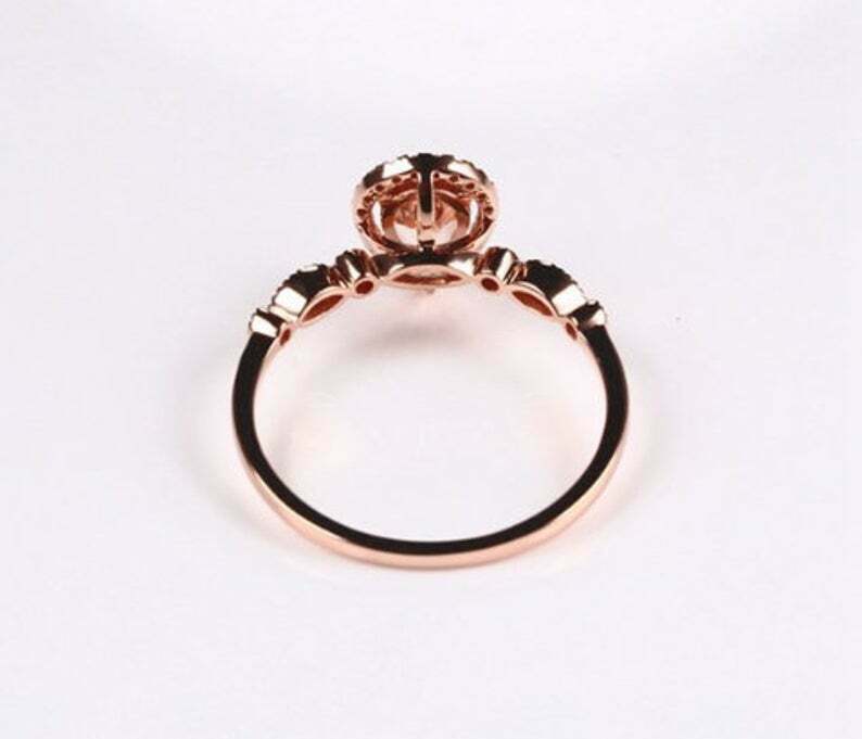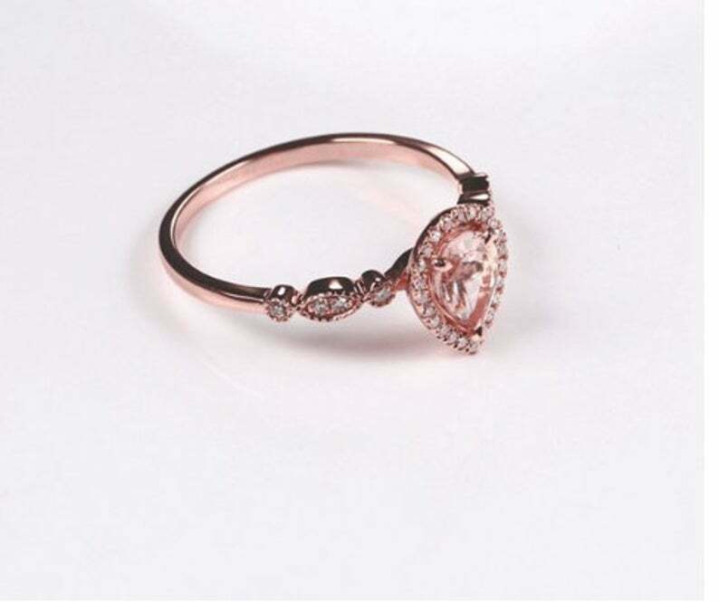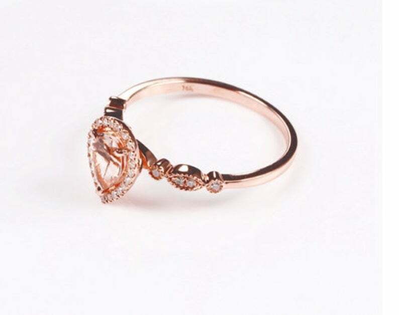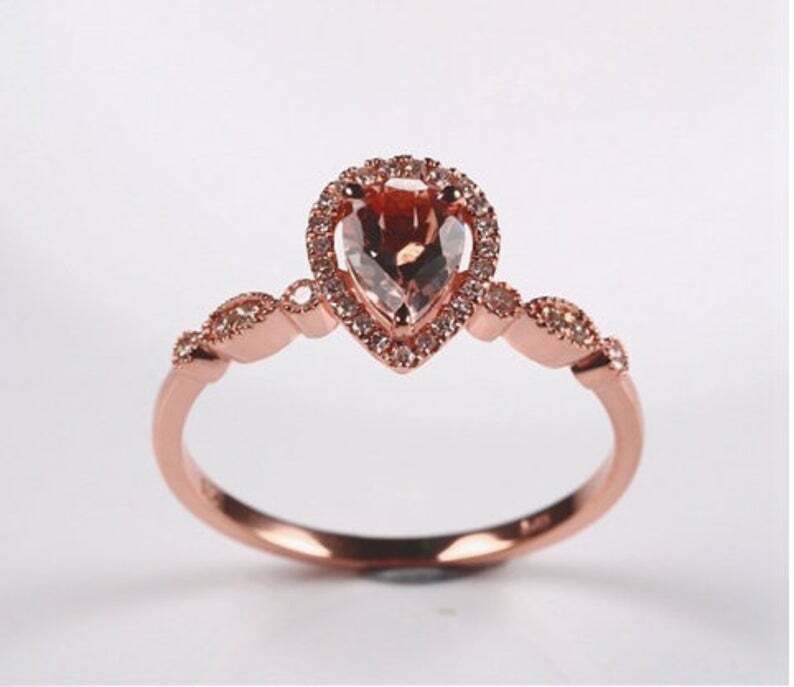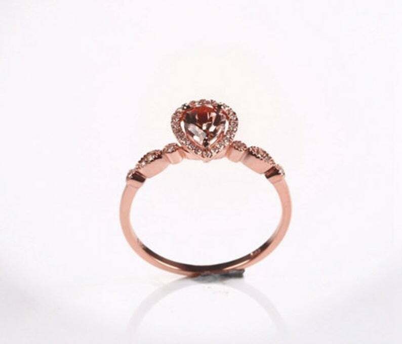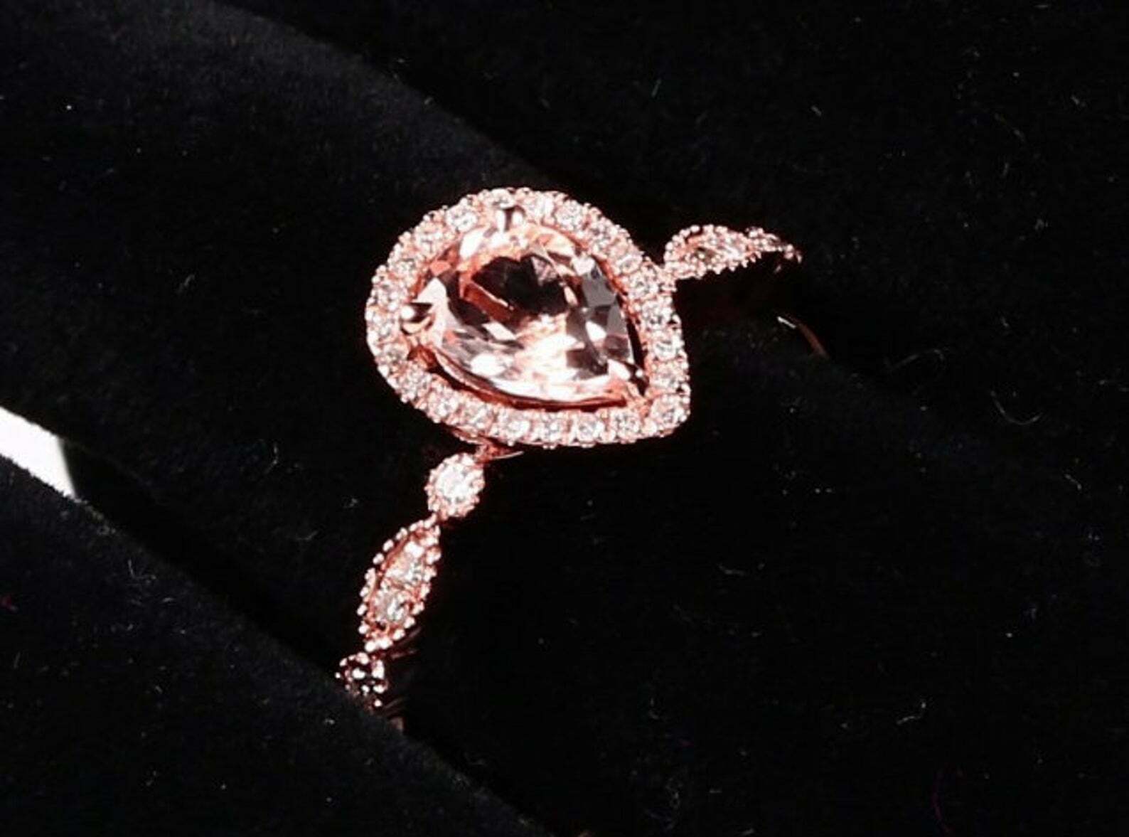 1.75ct Engagement Ring Pear Cut Peach Morganite Halo 14k Rose Gold Finish