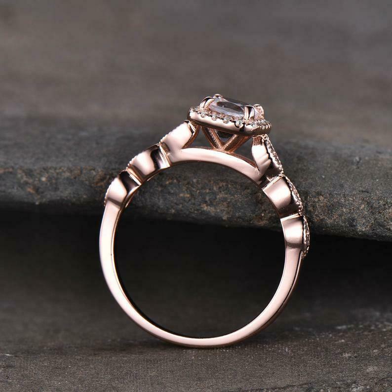 1.76ct Engagement Ring Cushion Cut Peach Morganite Halo 14k Rose Gold Finish