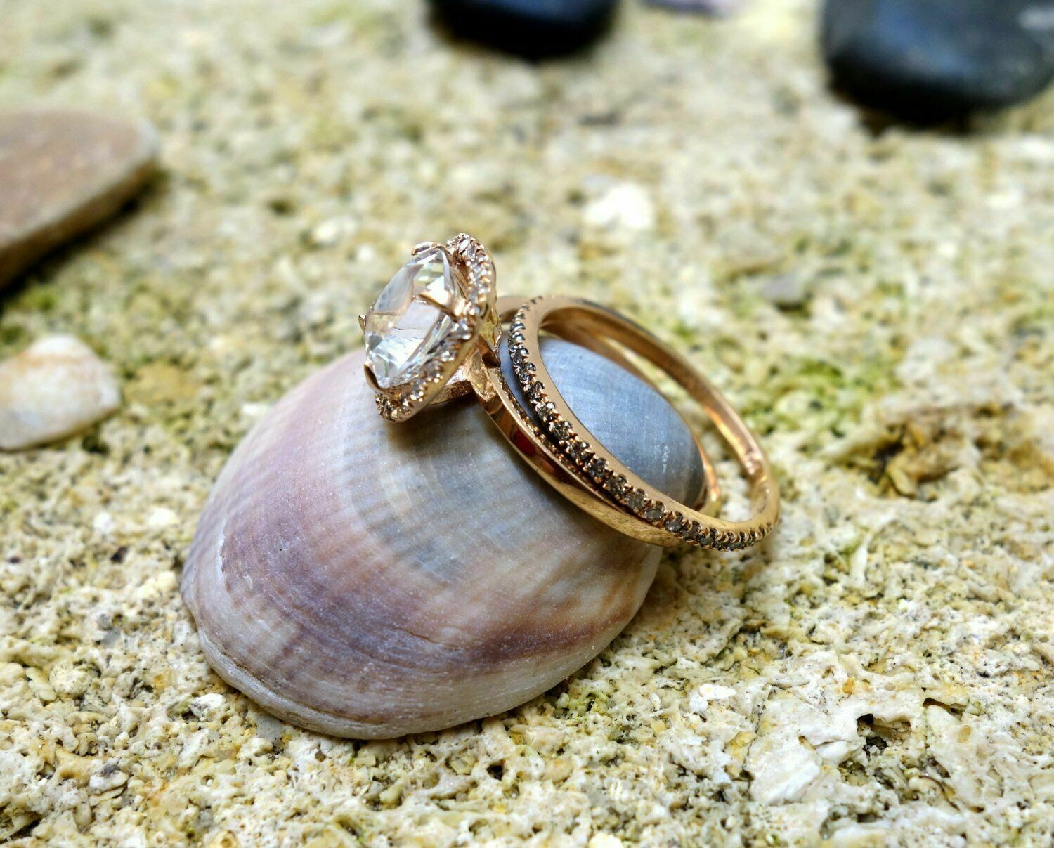 1.7ct Cushion Cut Peach Morganite Engagement Ring 14k RoseGold Finish Bridal Set