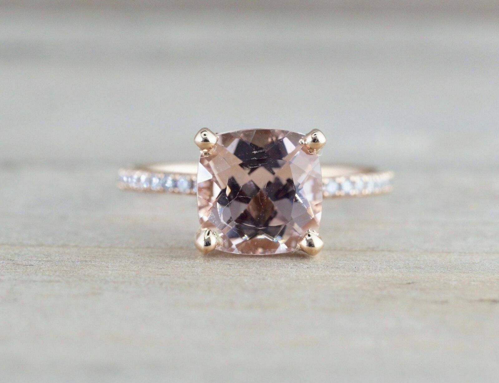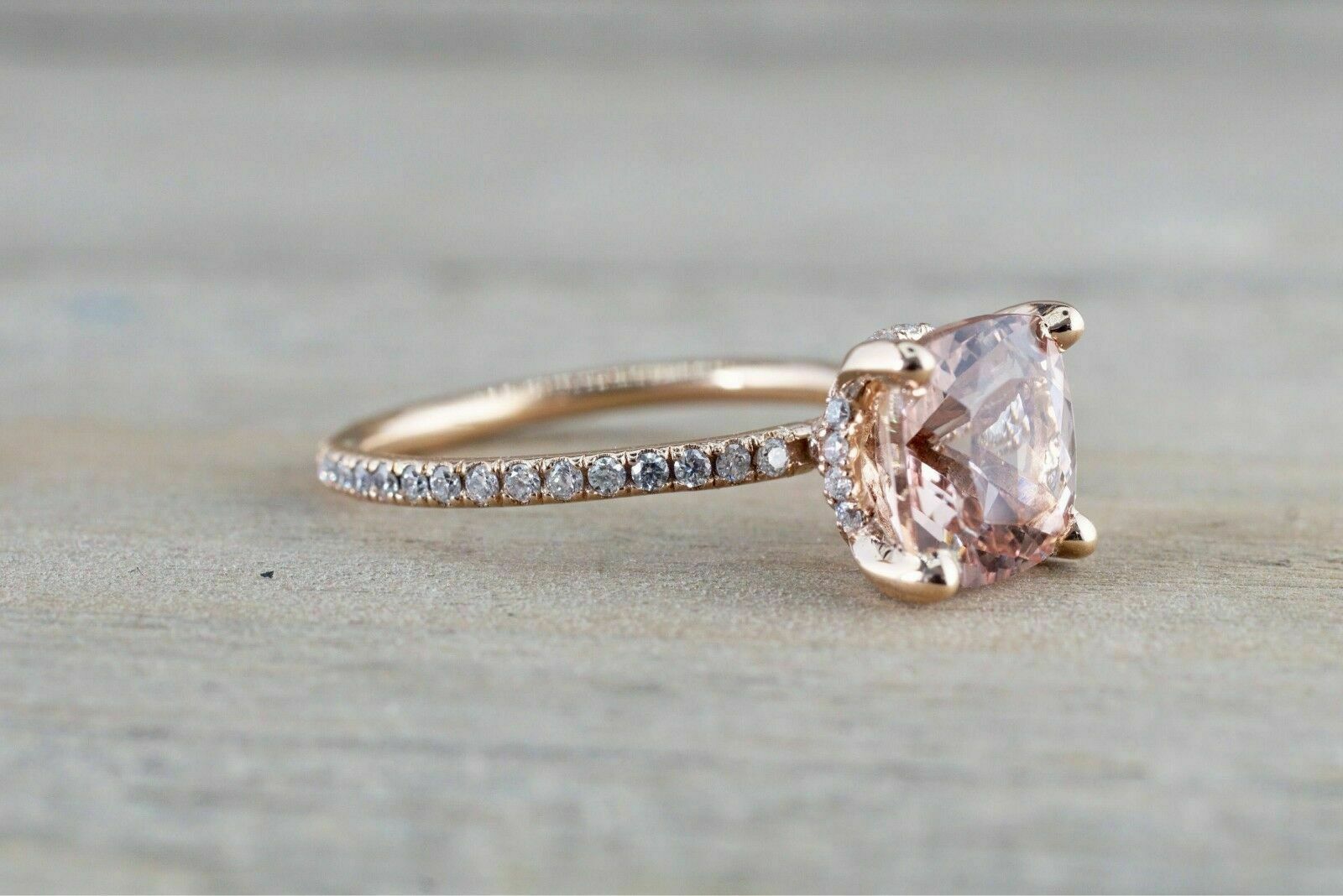 1.7ct Cushion Cut Peach Morganite Solitaire Engagement Ring 14k Rose Gold Finish