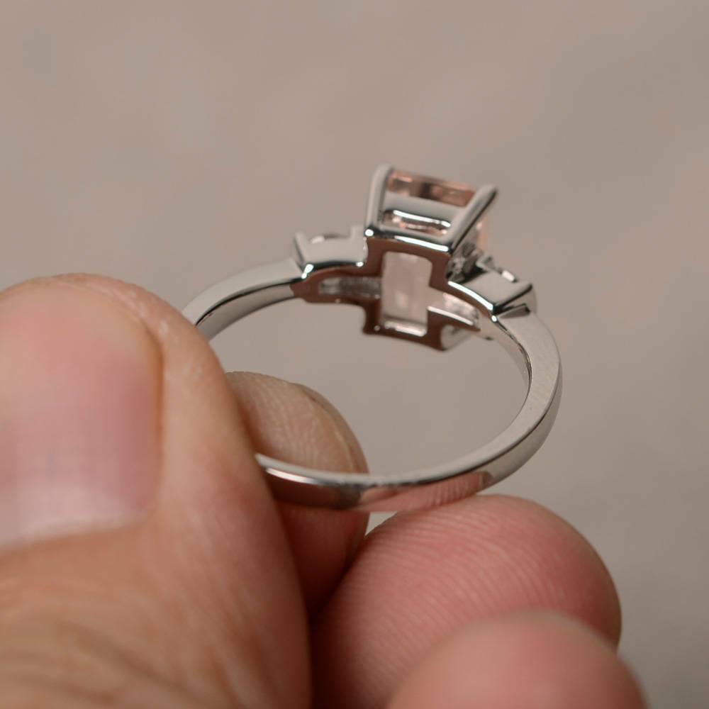1.7ct Emerald Cut Peach Morganite Engagement Ring 14k White Gold Finish Trilogy