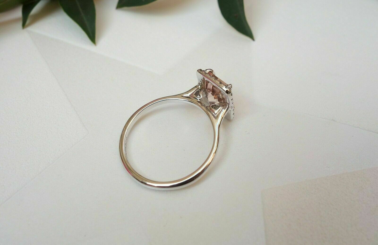 1.7ct Emerald Cut Peach Morganite Engagement Ring 18k WhiteGold Finish Solitaire