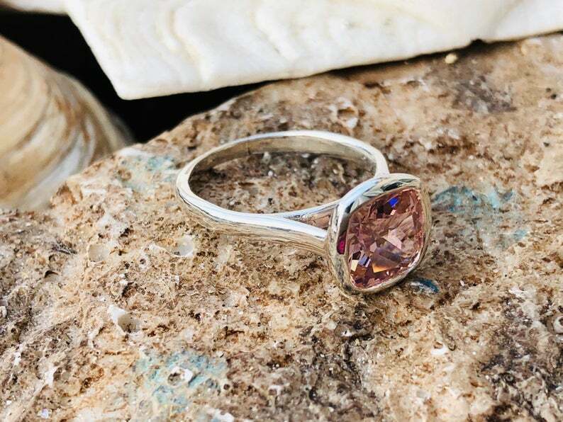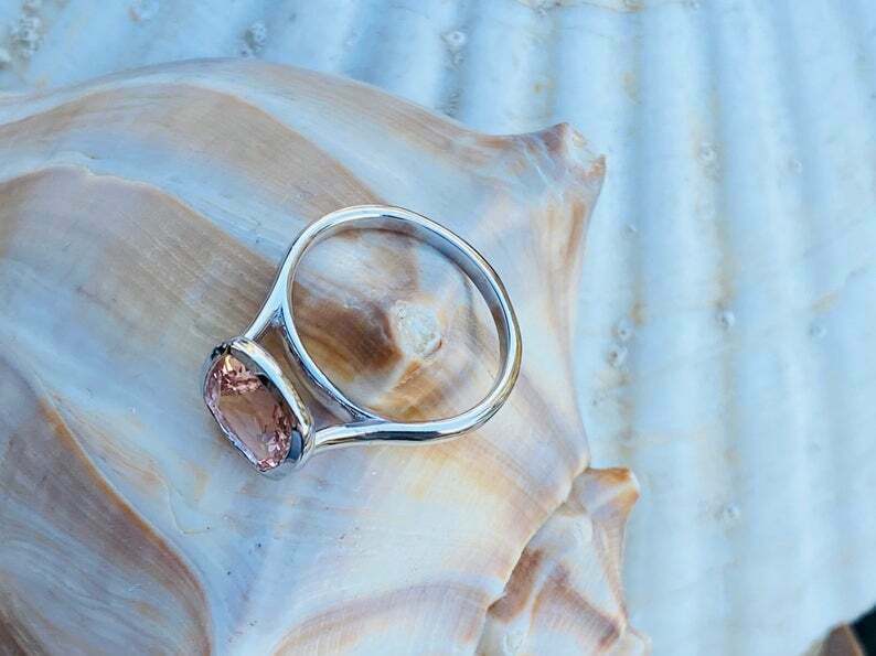 1.7ct Engagement Ring Cushion Cut Morganite Solitaire Women 14k White Gold Finish