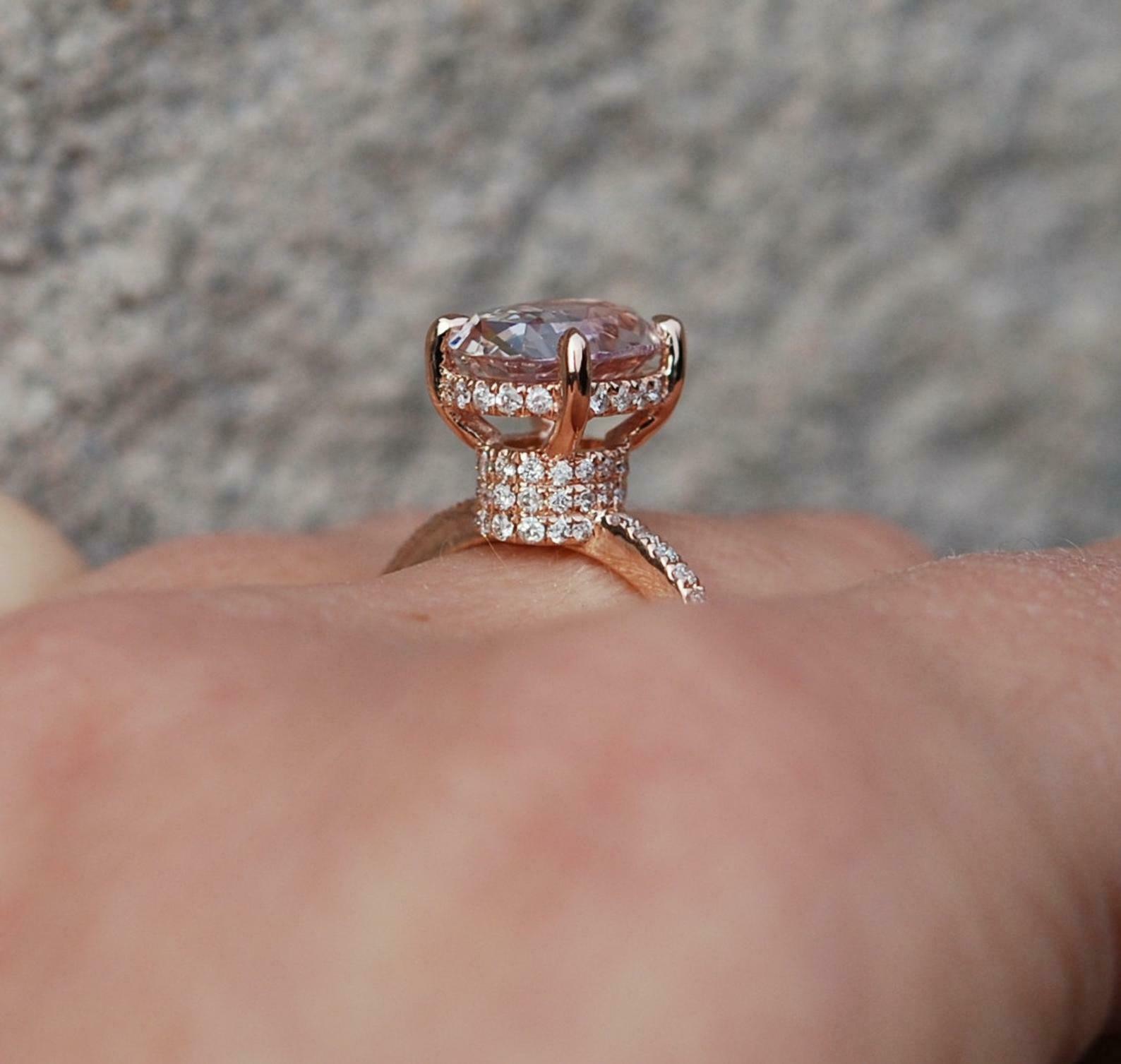 1.7ct Engagement Ring Oval Cut Peach Morganite Hidden Halo 14k Rose Gold Finish