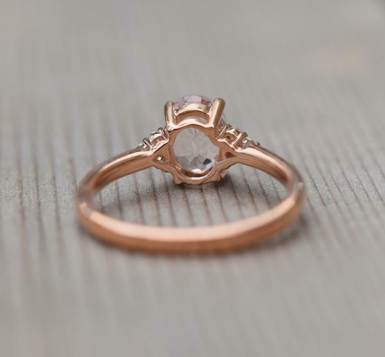 1.7ct Oval Cut Morganite Solitaire Ring 14k Rose Gold Finish with Round Accents