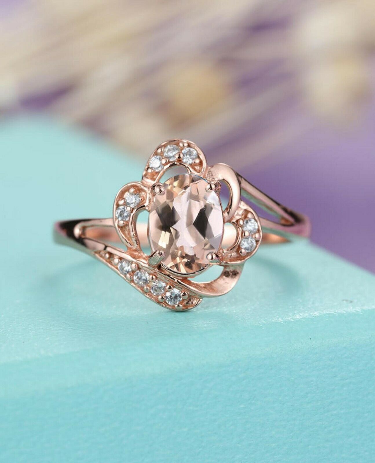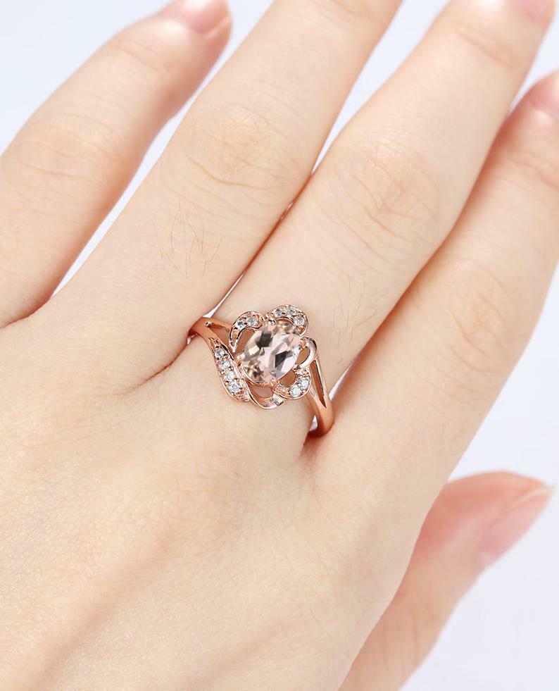 1.7ct Oval Cut Peach Morganite Floral Open Engagement Ring 14k Rose Gold Finish