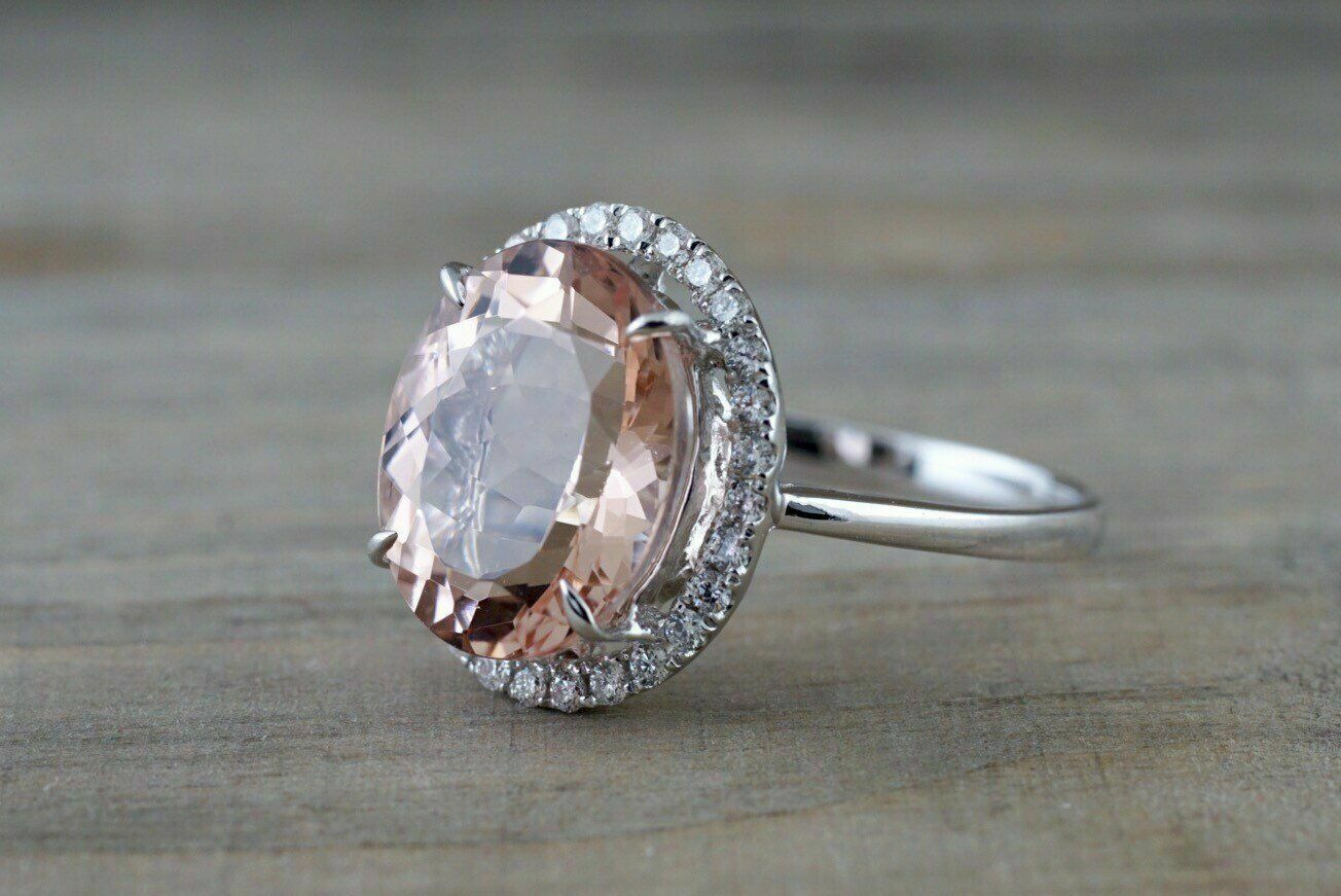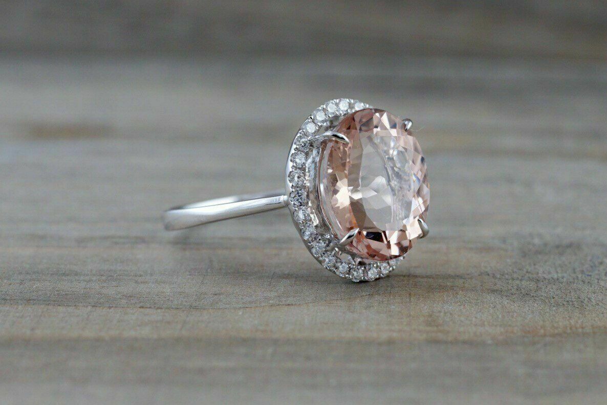 1.7ct Oval Cut Peach Morganite Halo Solitaire Engagement Ring 14k WhiteGold Over