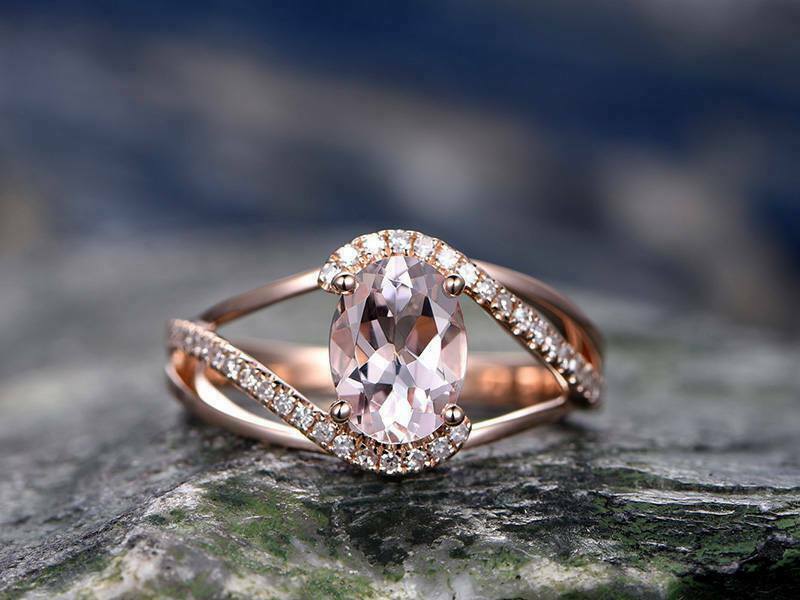 1.7ct Oval Cut Peach Morganite Swirl Style Engagement Ring 14K Rose Gold Finish