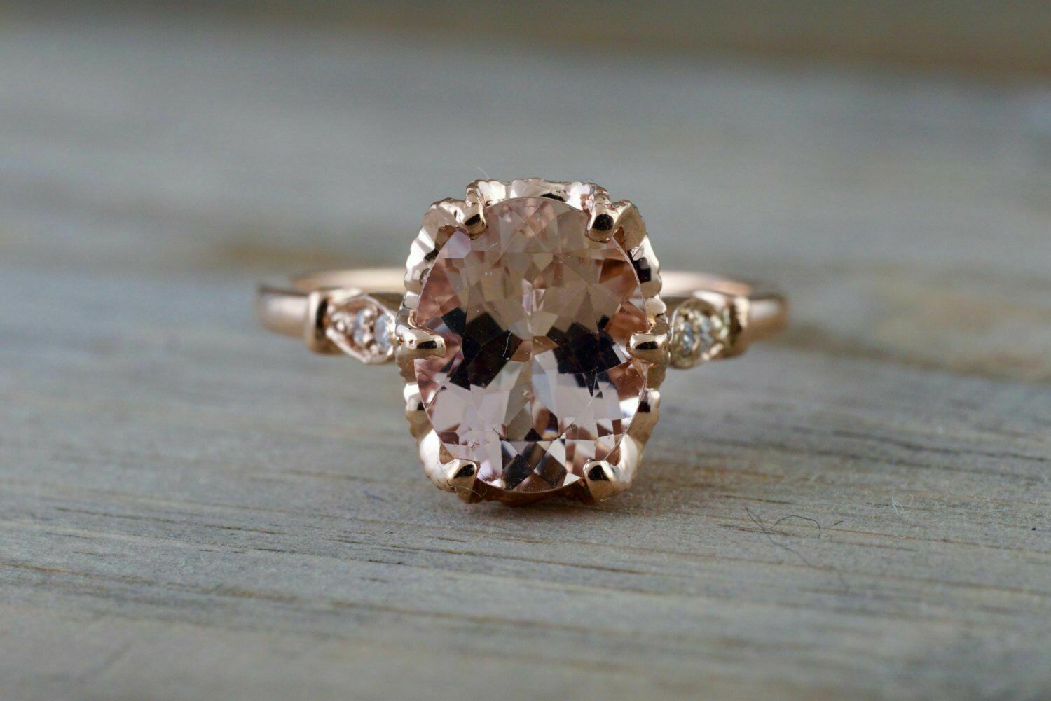 1.7ct Oval Peach Morganite Filigree Solitaire Engagement Ring 18k Rose Gold Over