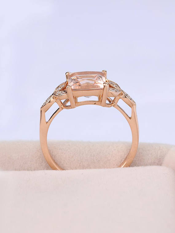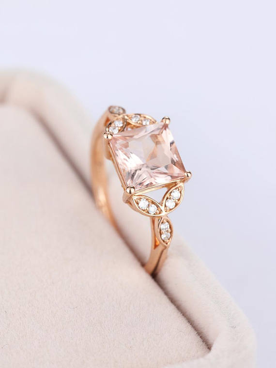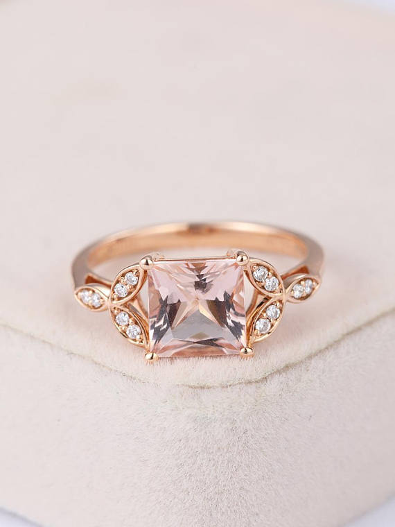 1.7ct Princess Peach Morganite Diamond Floral Engagement Ring 14k Rose Gold Over