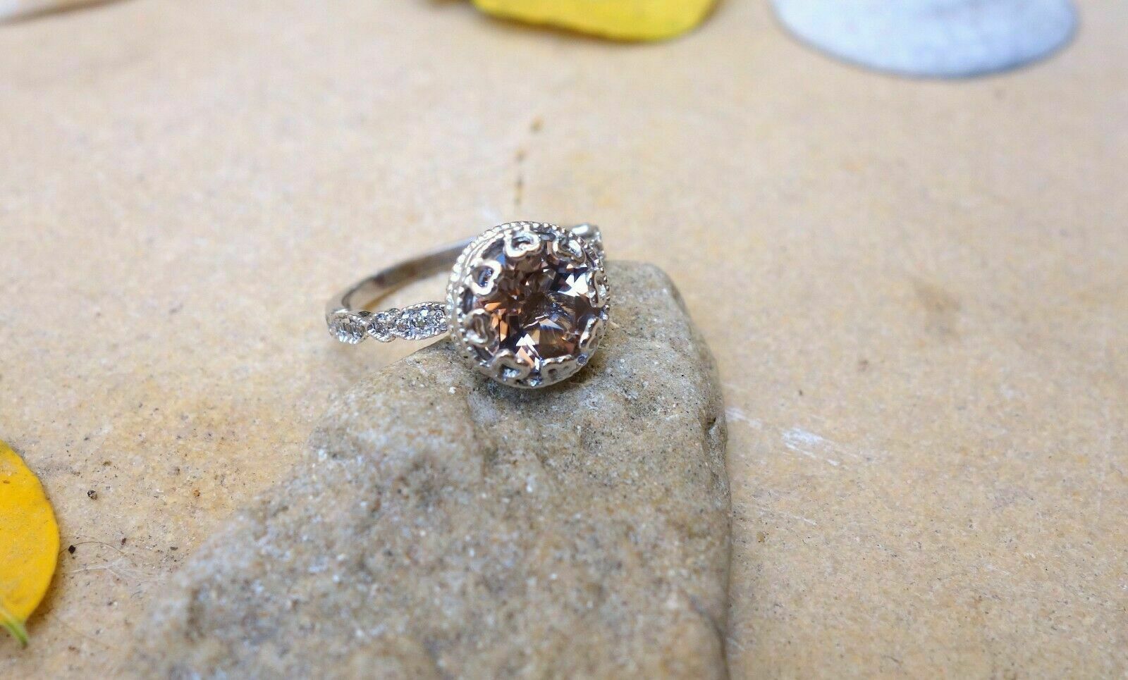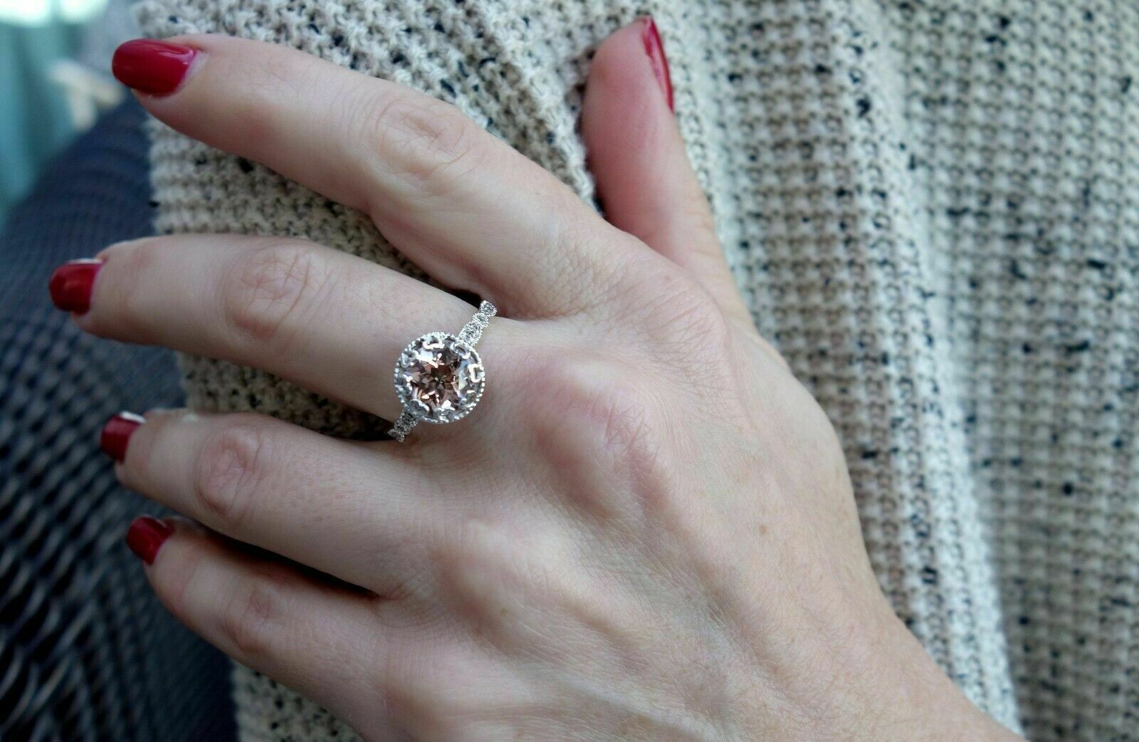 1.7ct Round Cut Peach Morganite Engagement Ring 14k White Gold Finish Stackable