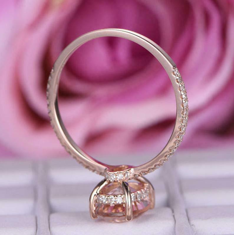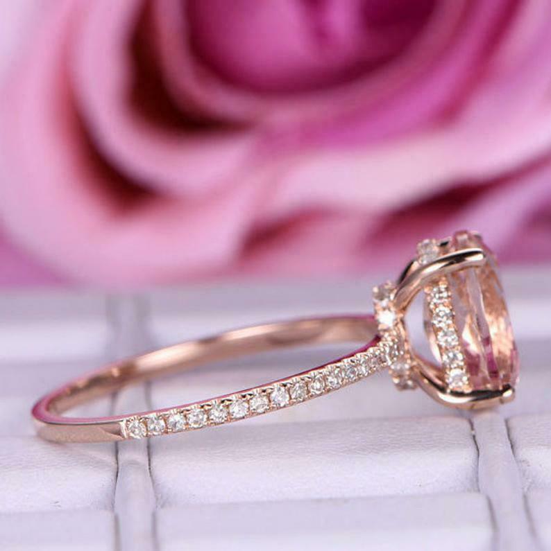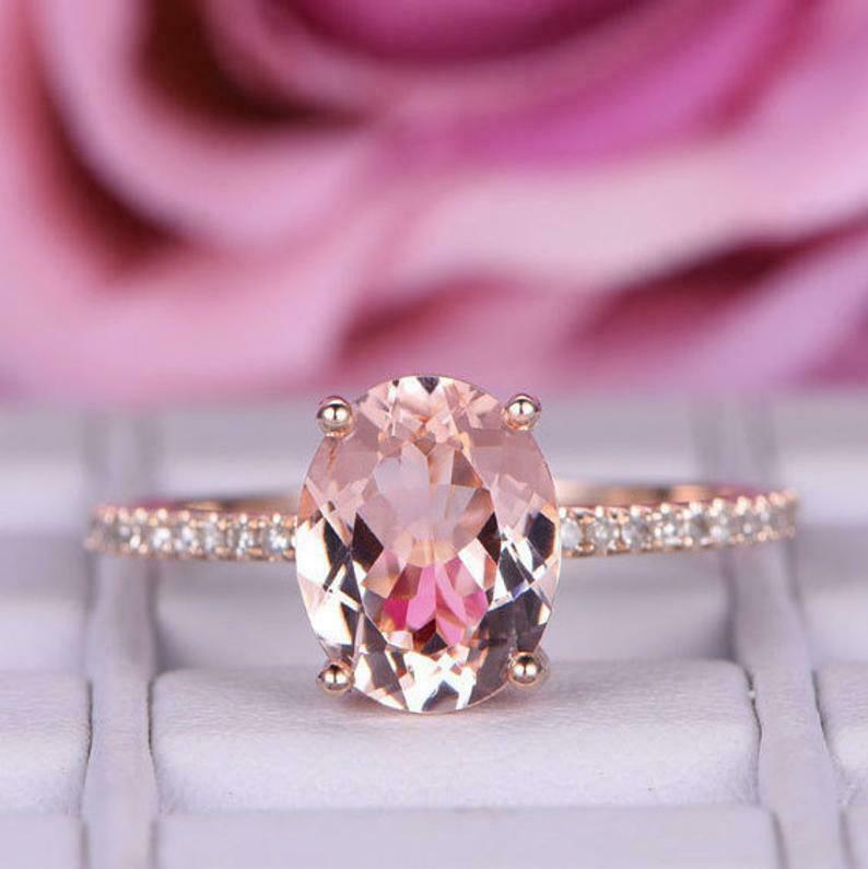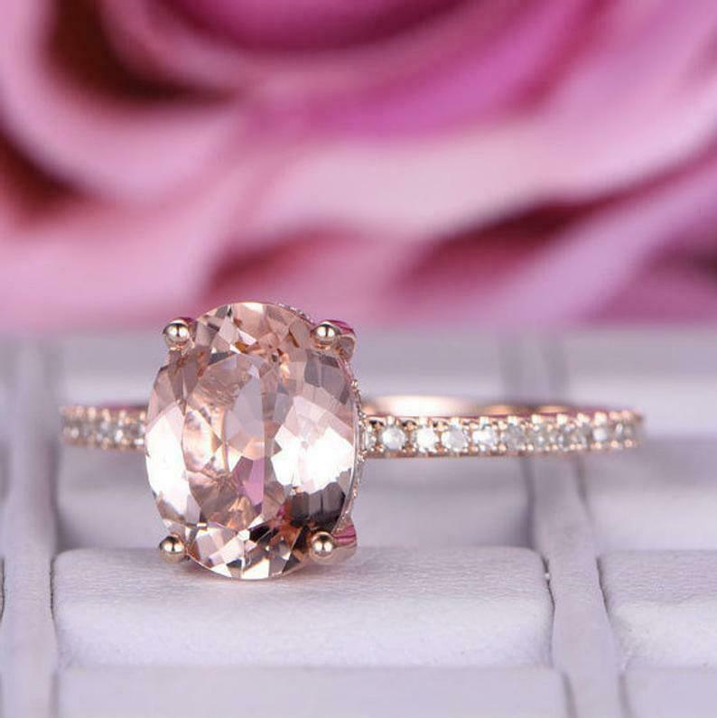 1.8ct Oval Peach Morganite Engagement Ring Dual Hidden Halo 14k Rose Gold Finish