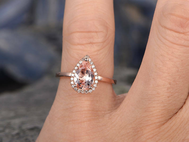 1.8Ct Pear Cut Peach Morganite Halo Solitaire Engagement Ring 14K Rose Gold Over