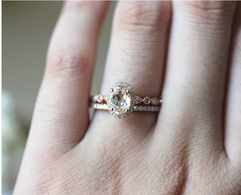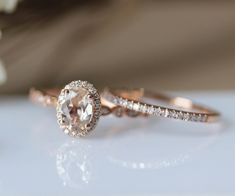 1.9ct Oval Cut Peach Morganite Engagement Ring 18k Rose Gold Finish Bridal Set