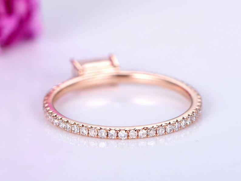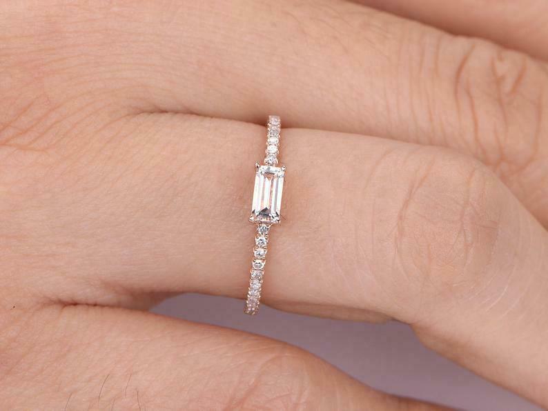 1ct Baguette Cut Morganite Engagement Ring Accents Solitaire 14k Rose Gold Over