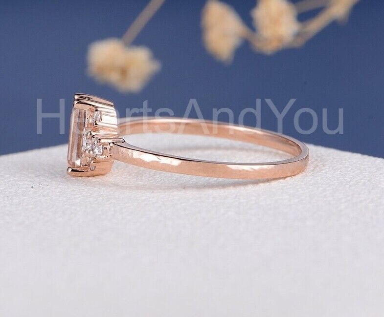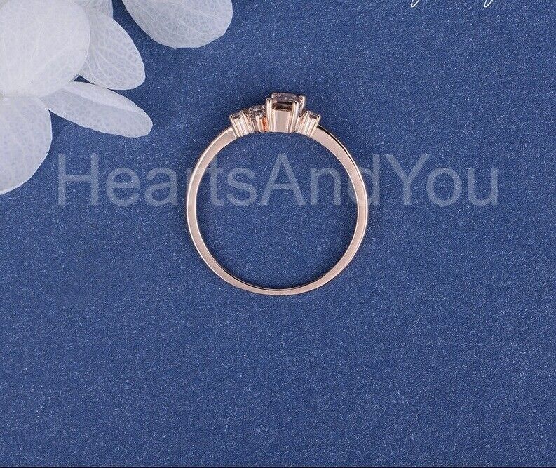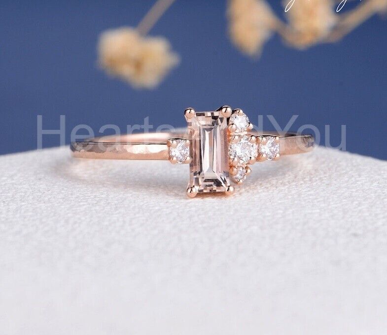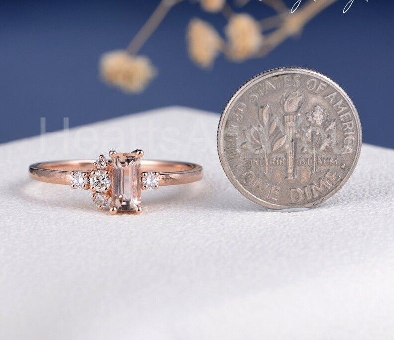 1ct Baguette Cut Simulated Peach Morganite Cluster Ring 14k Rose Gold Plated