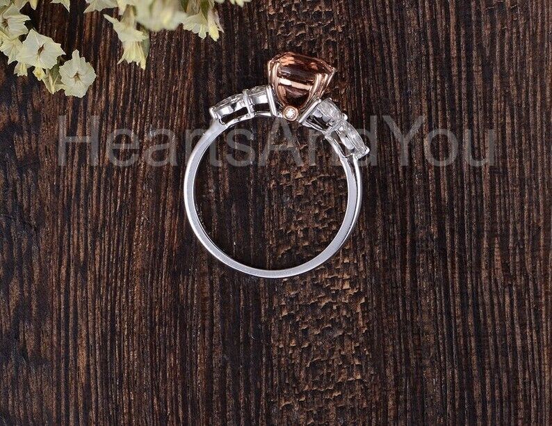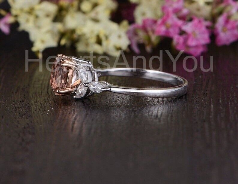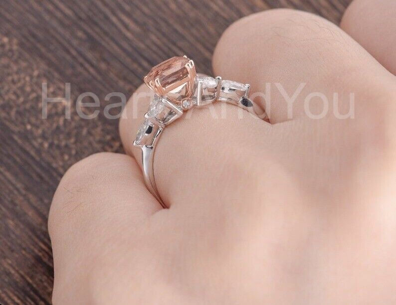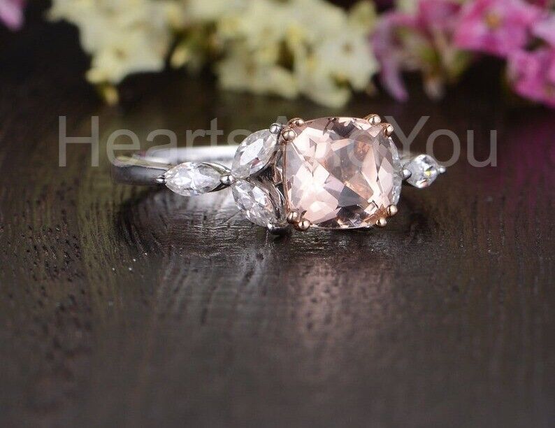 1ct Cushion Cut Simulated Peach Morganite Floral Engagement Ring 14k White Gold Plated