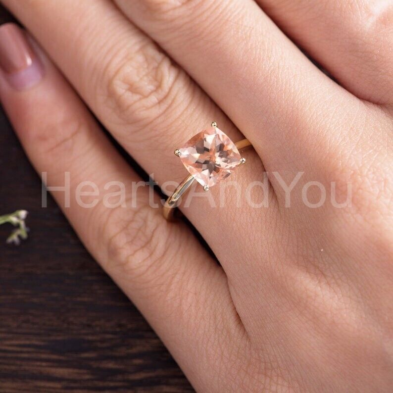 1ct Cushion Cut Simulated Morganite Solitaire Engage Ring 14k Rose Gold Plated