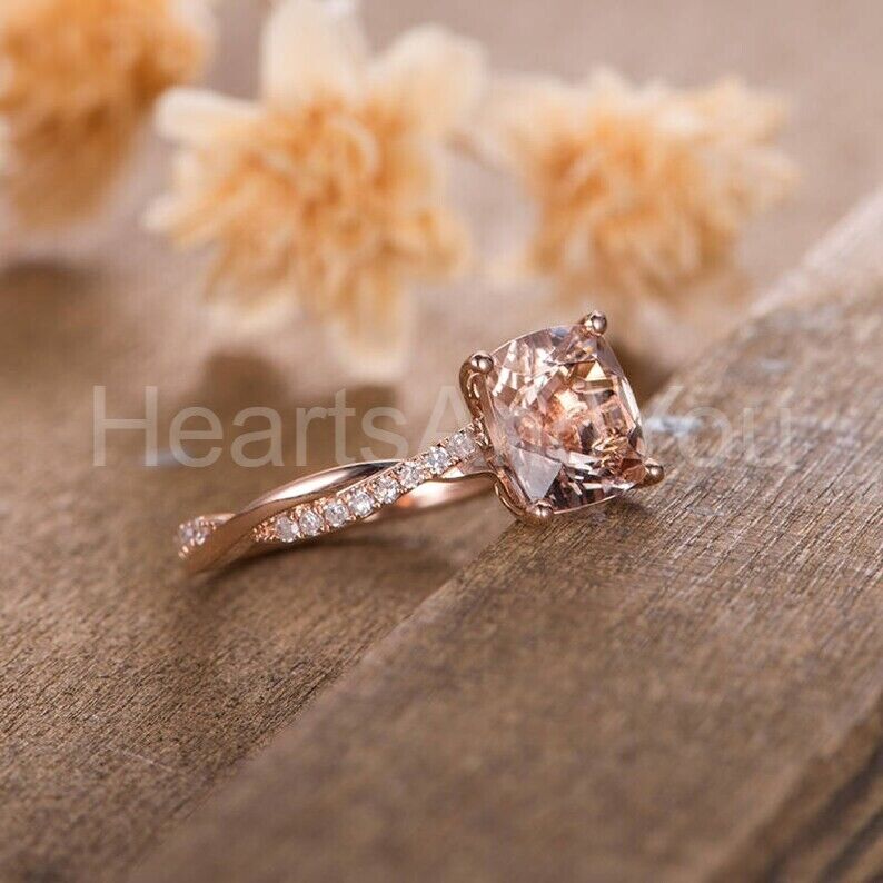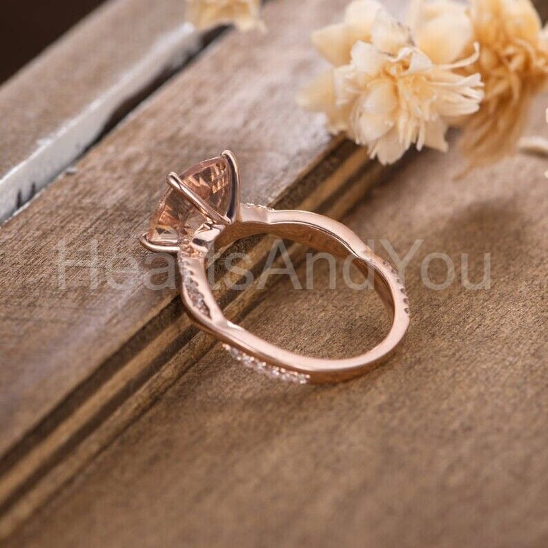 1ct Cushion Cut Simulated Peach Morganite Infinity Ring 14k Rose Gold Plated