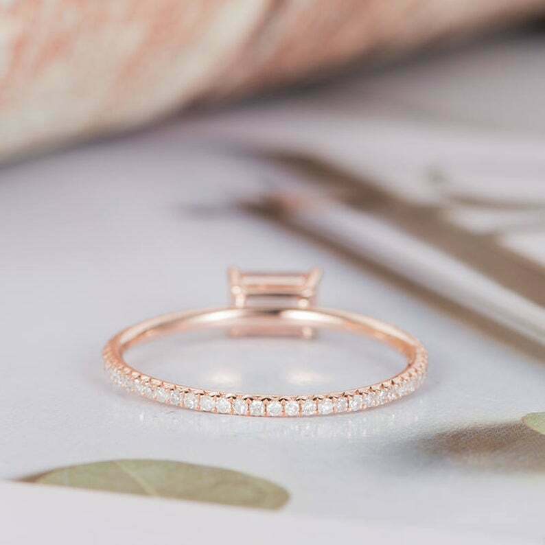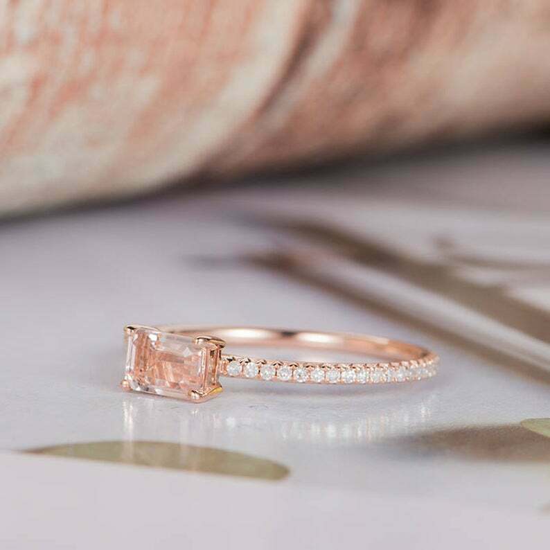1ct Emerald Cut Peach Morganite Accents with Solitaire Ring 14k Rose Gold Finish
