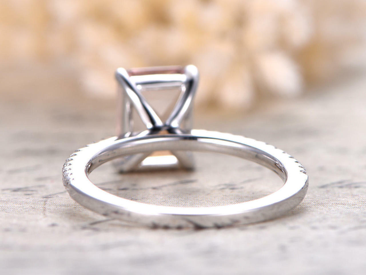 1ct Emerald Cut Peach Morganite Delicated Engagement Ring 18k Rose Gold Finish