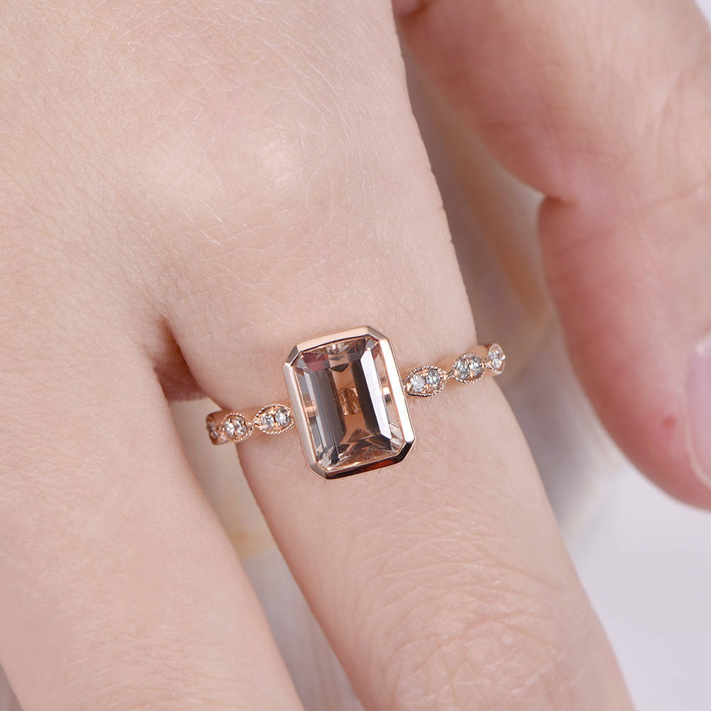1ct Emerald Cut Peach Morganite Solitaire Engagement Ring 18k Rose Gold Finish