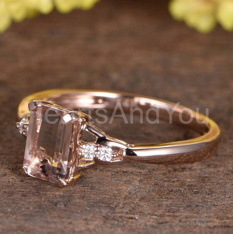 1ct Emerald Cut Simulated Morganite Accented Engagement Ring 14k RoseGold Plated